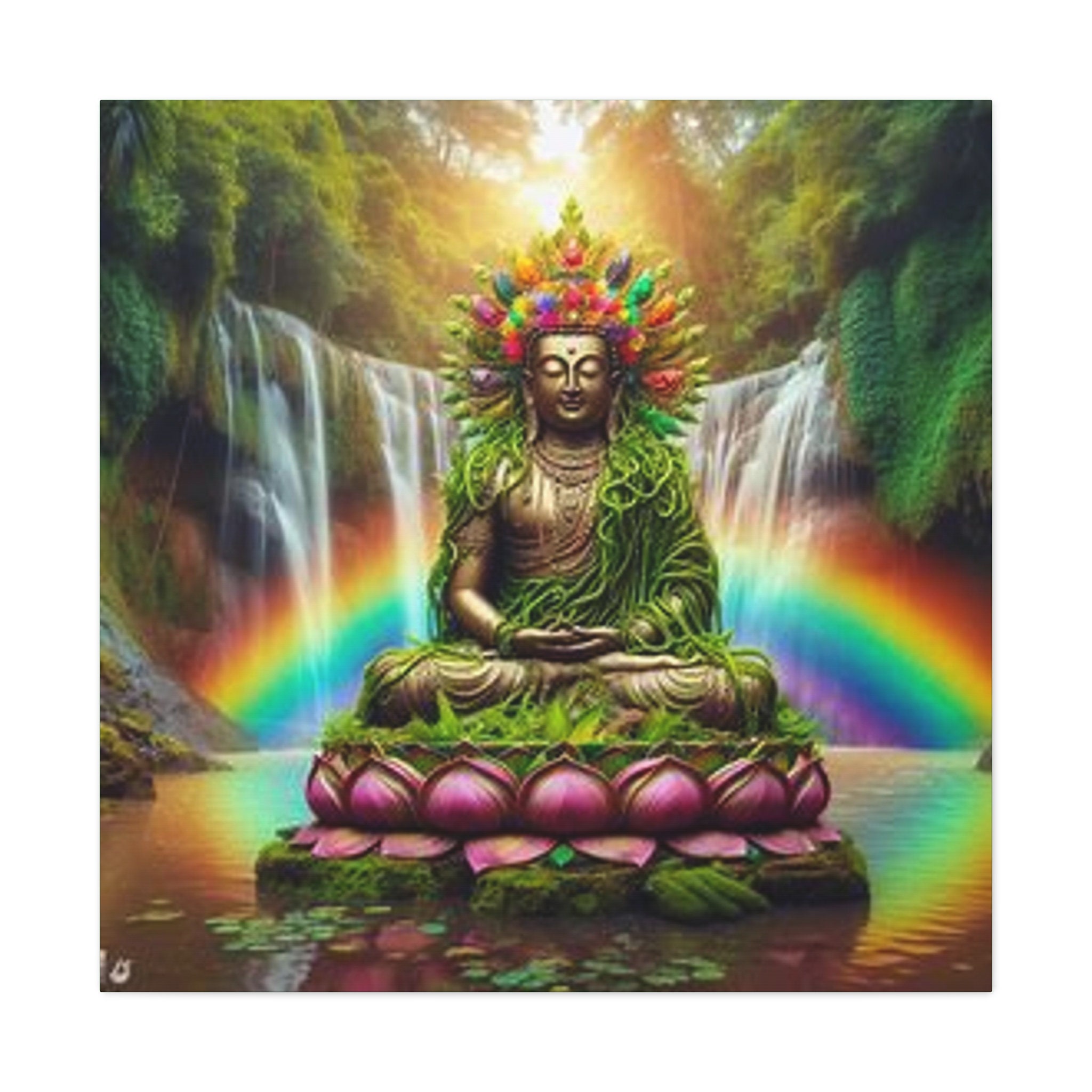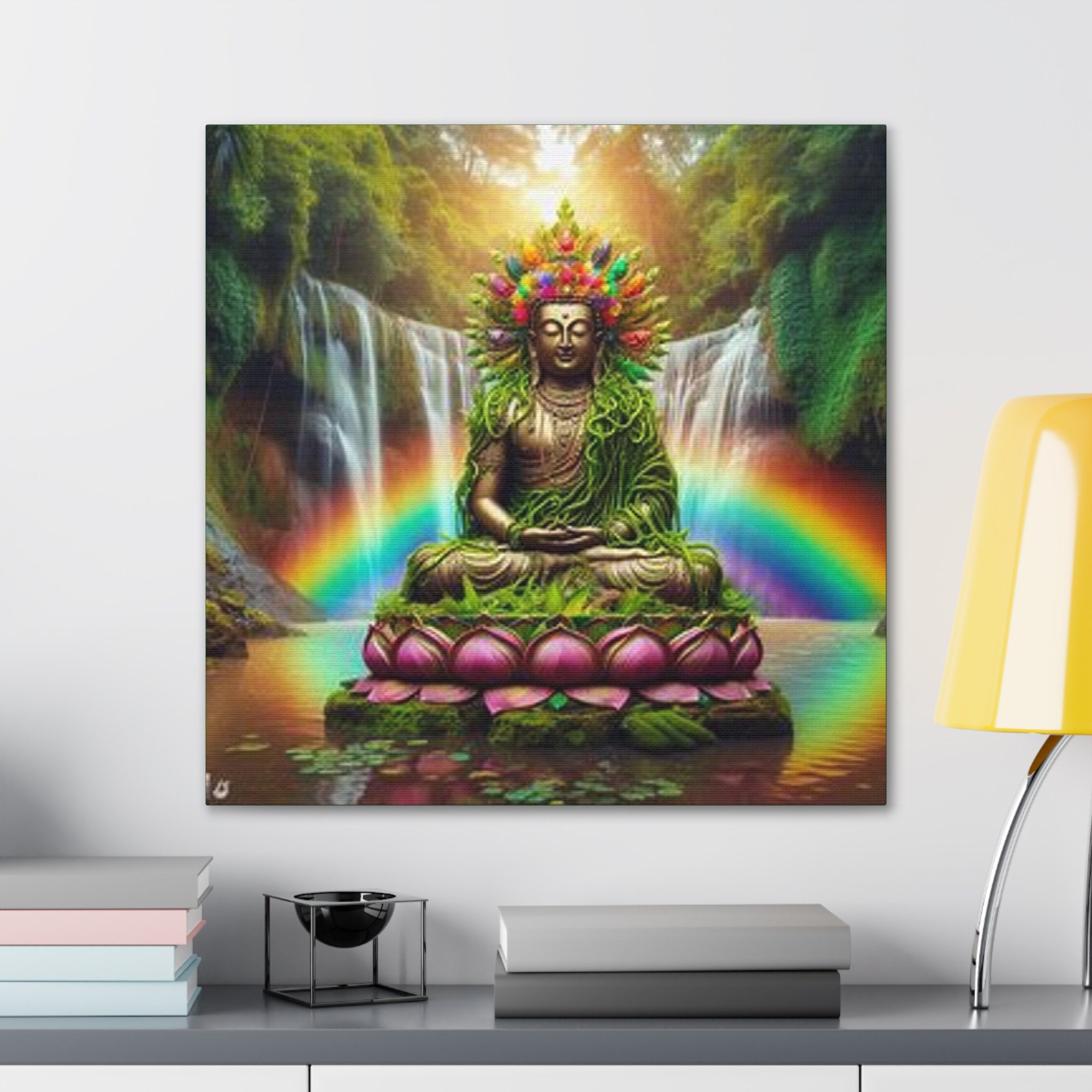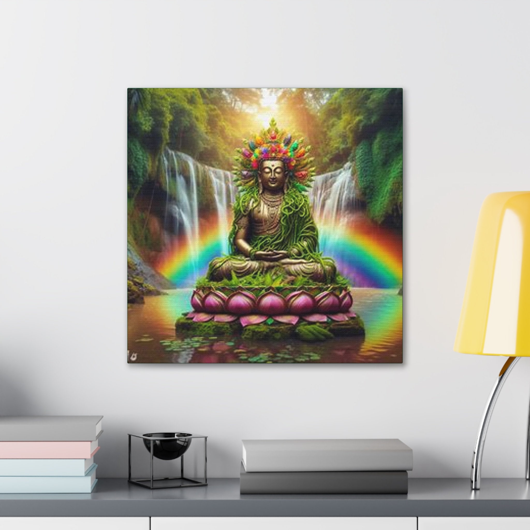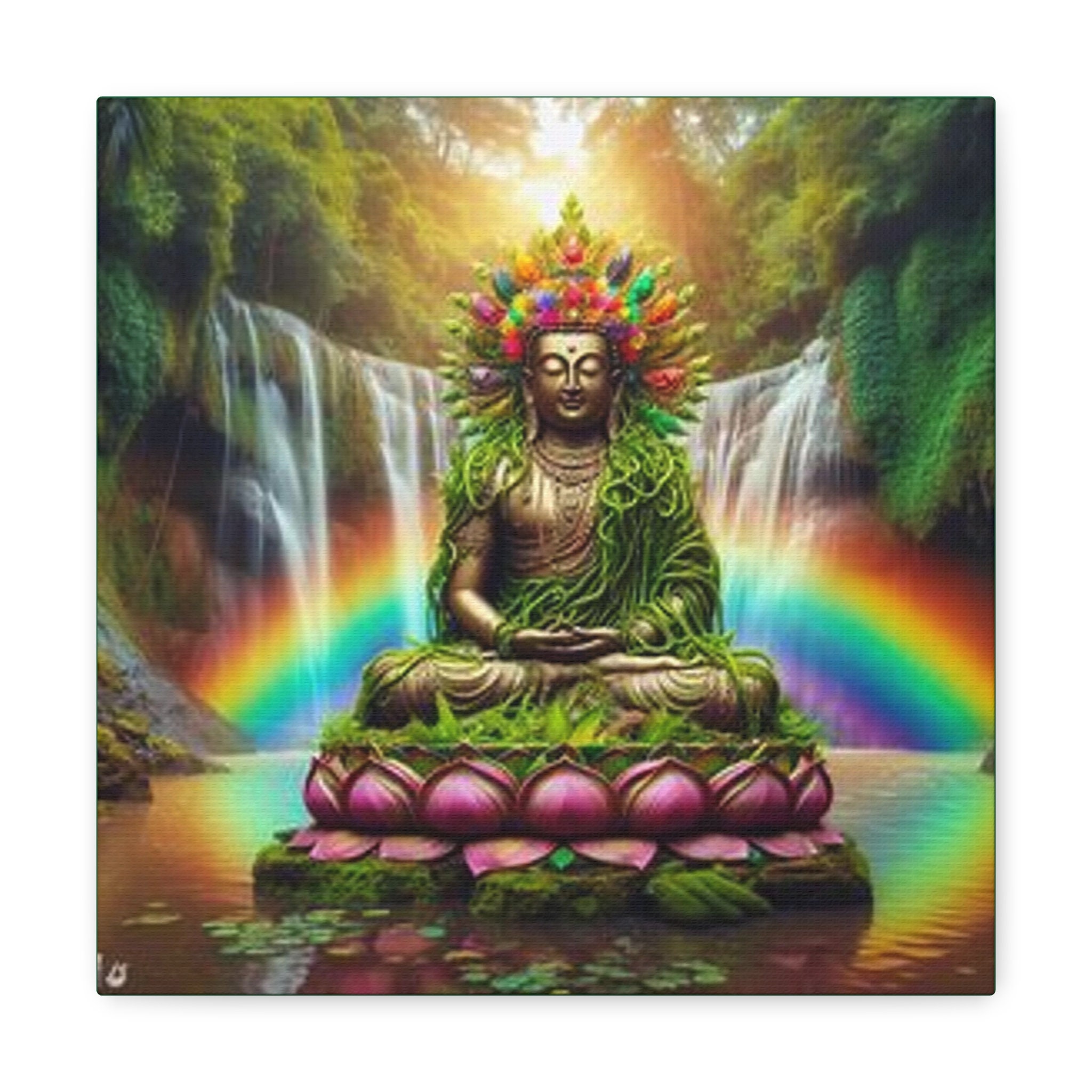 Ayahuasca Inspired Enlightened Lotus Buddha Canvas Art: Spiritual Home Decor