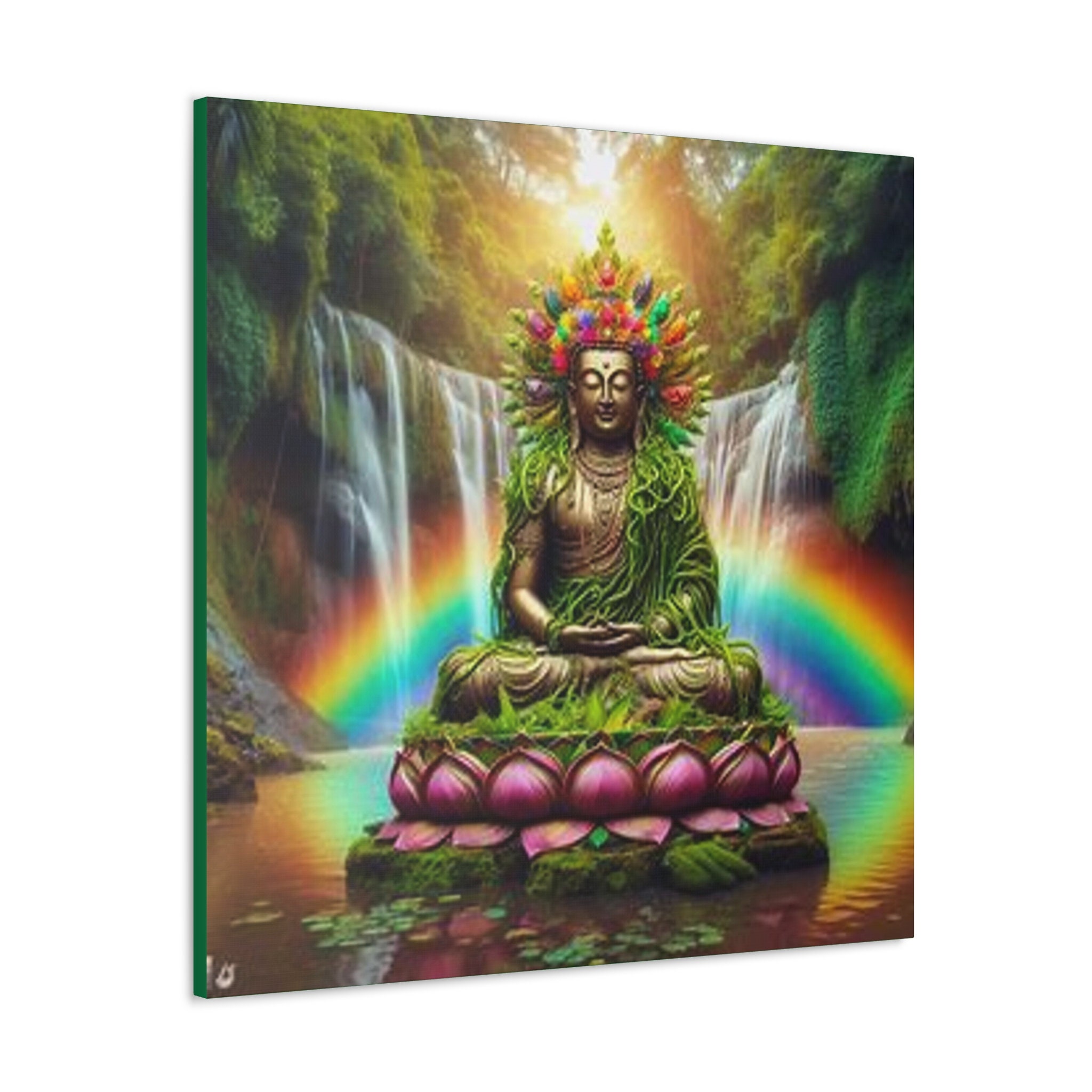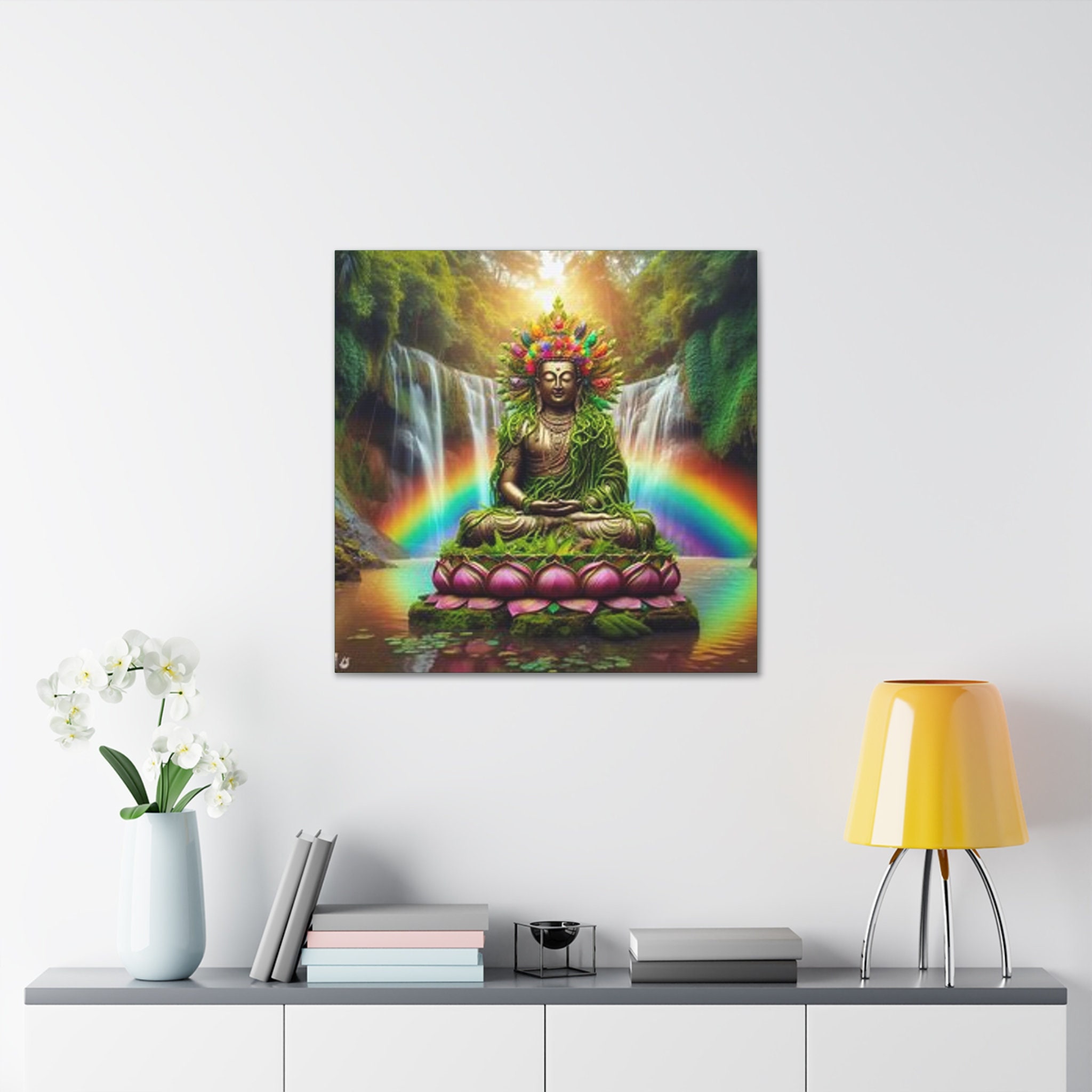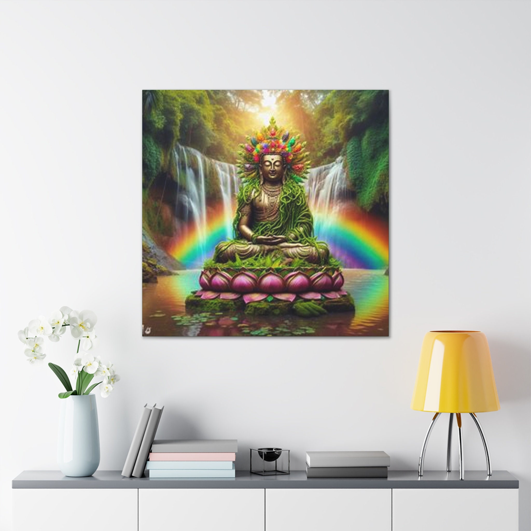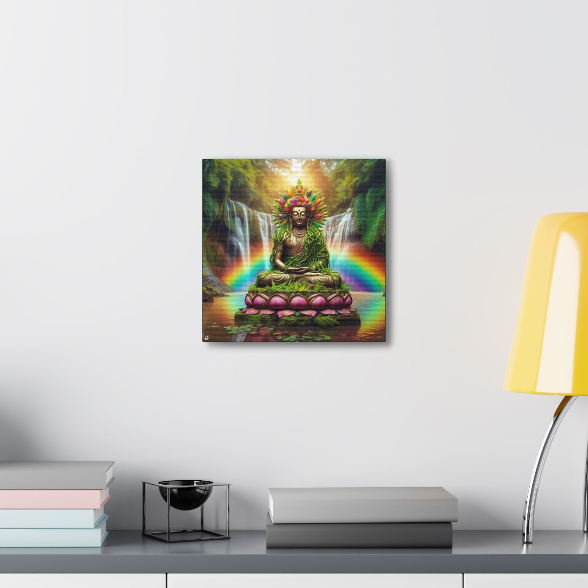 Ayahuasca Inspired Enlightened Lotus Buddha Canvas Art: Spiritual Home Decor