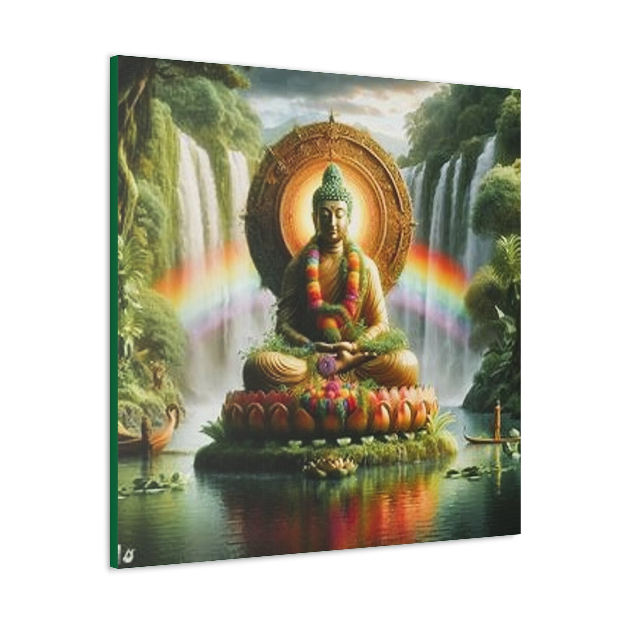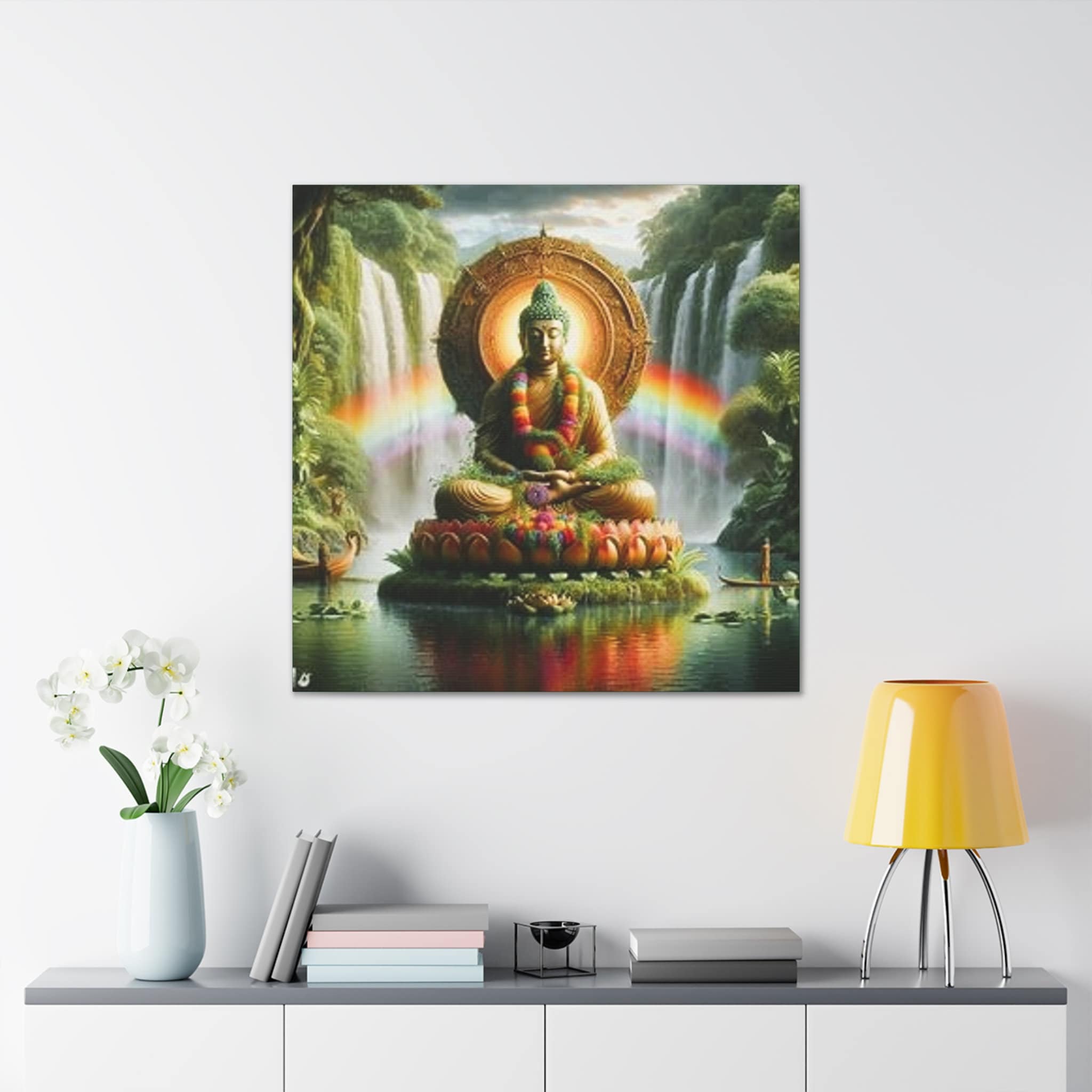 Ayahuasca Inspired Enlightened Buddha Canvas Art: Lotus Pond, Spiritual Decor