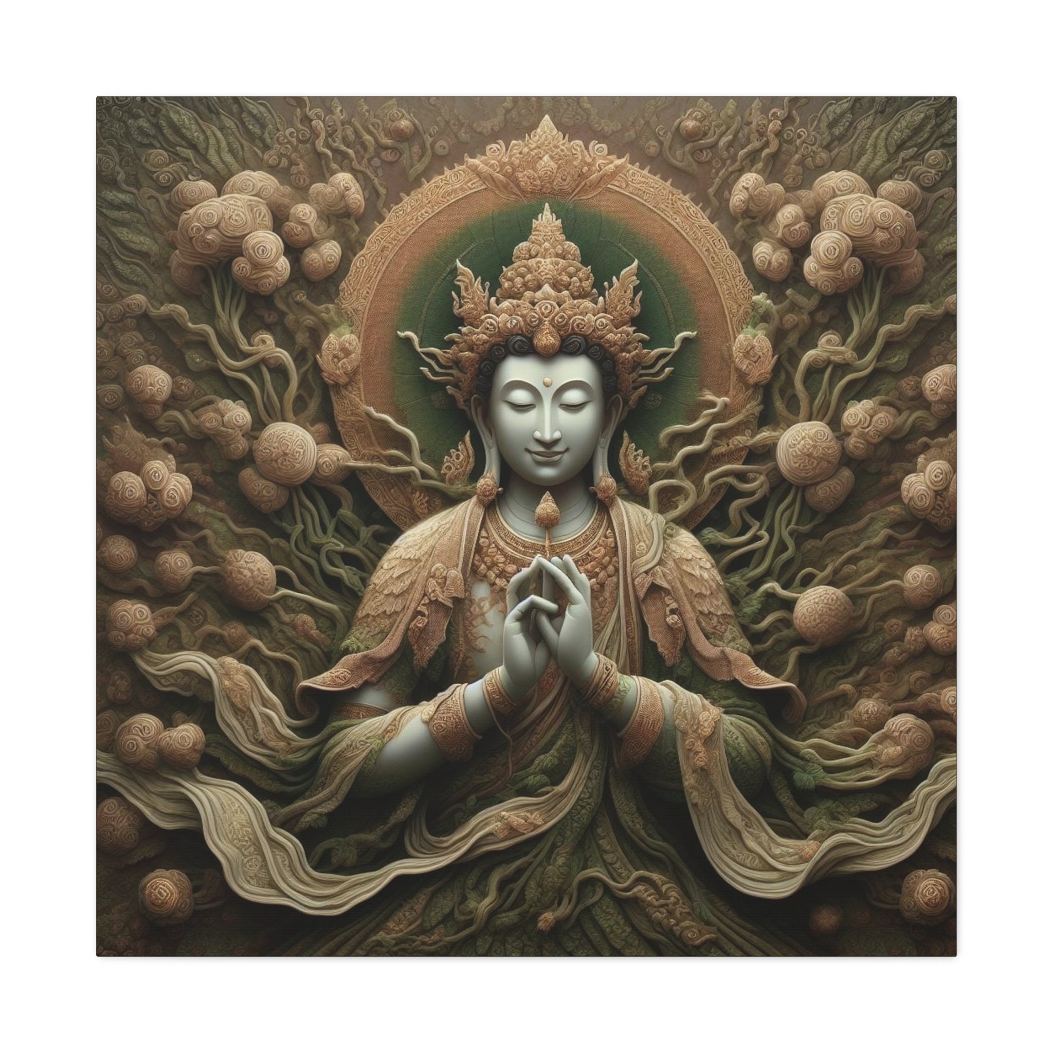 Whether adorning the walls of your home, meditation space, or spiritual center, "Purifying Radiance" serves as a visual reminder of the transformative power of inner cleansing and the boundless potential for spiritual growth. Elevate your surroundings and elevate your spirit with this exquisite canvas art, a testament to the beauty of the Buddhist experience of purification.