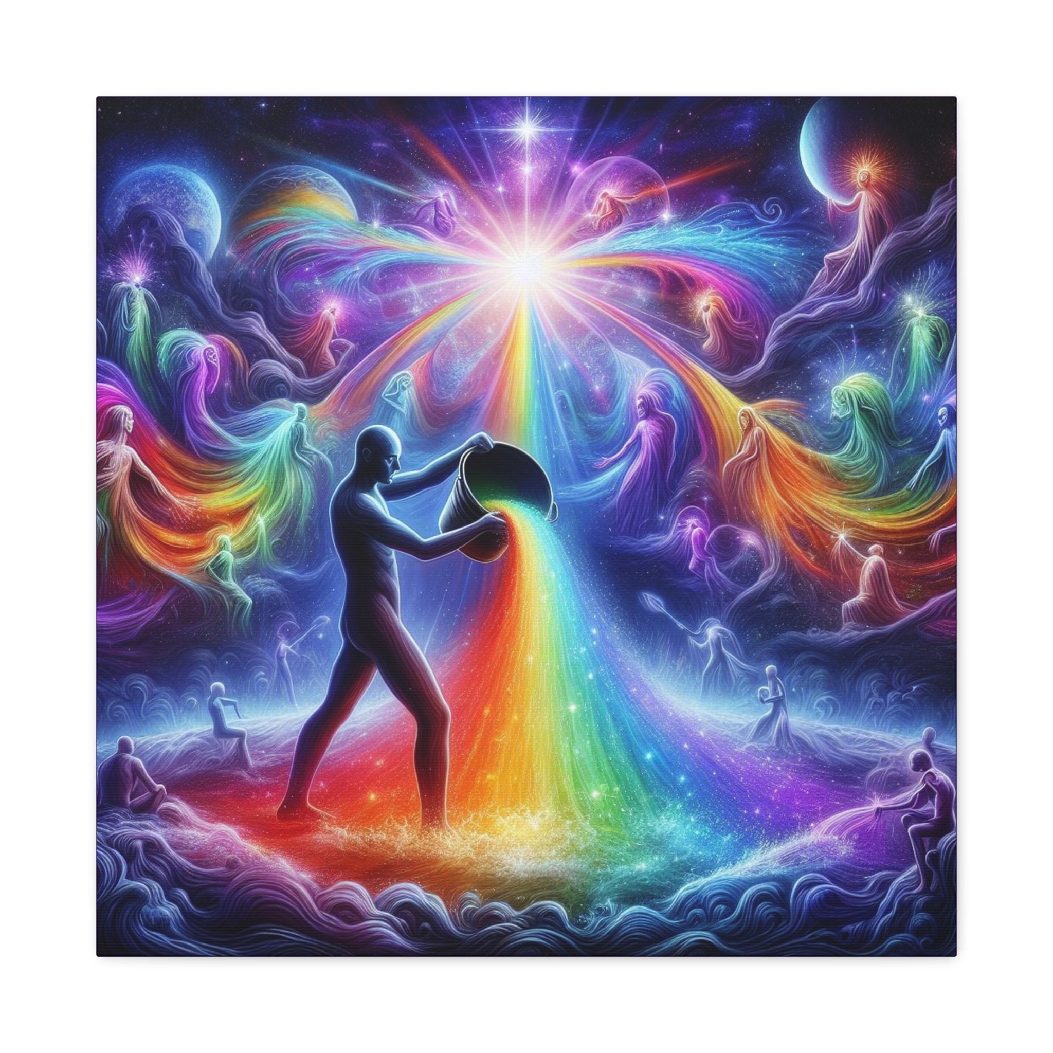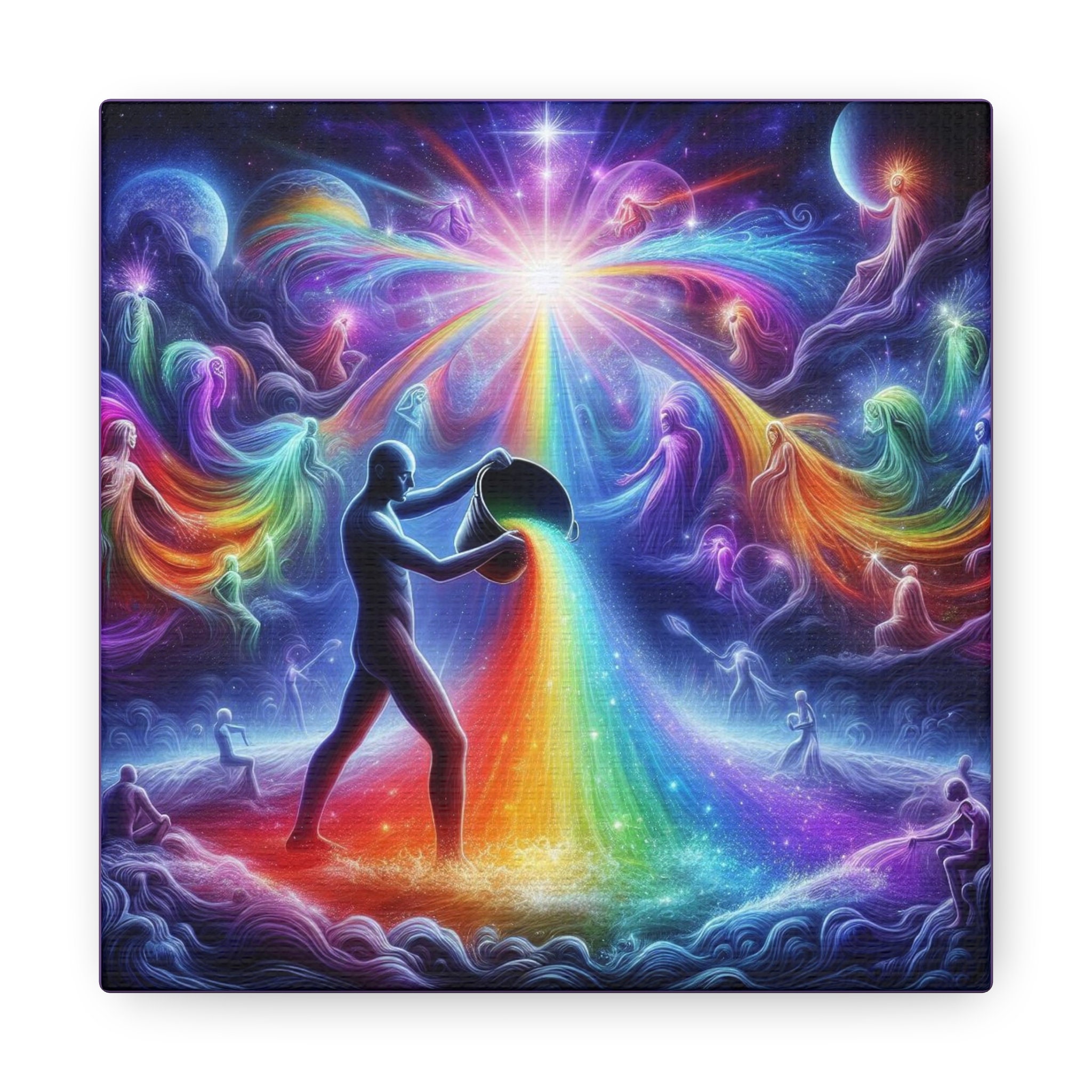 Step into the mystical realm of Ayahuasca ceremony with our mesmerizing canvas wrap art piece, "Rainbow Purge: Ayahuasca Illumination." This enchanting artwork beautifully captures the profound spiritual significance of purging rainbow light during the transformative journey of Ayahuasca, a revered plant medicine known for its healing and visionary properties.