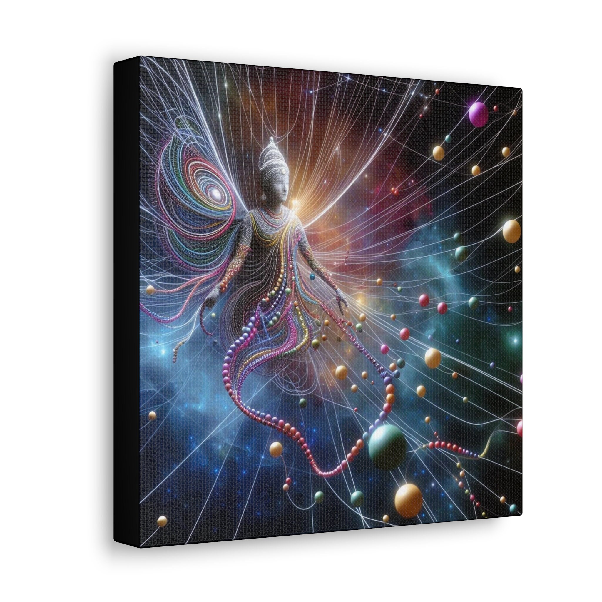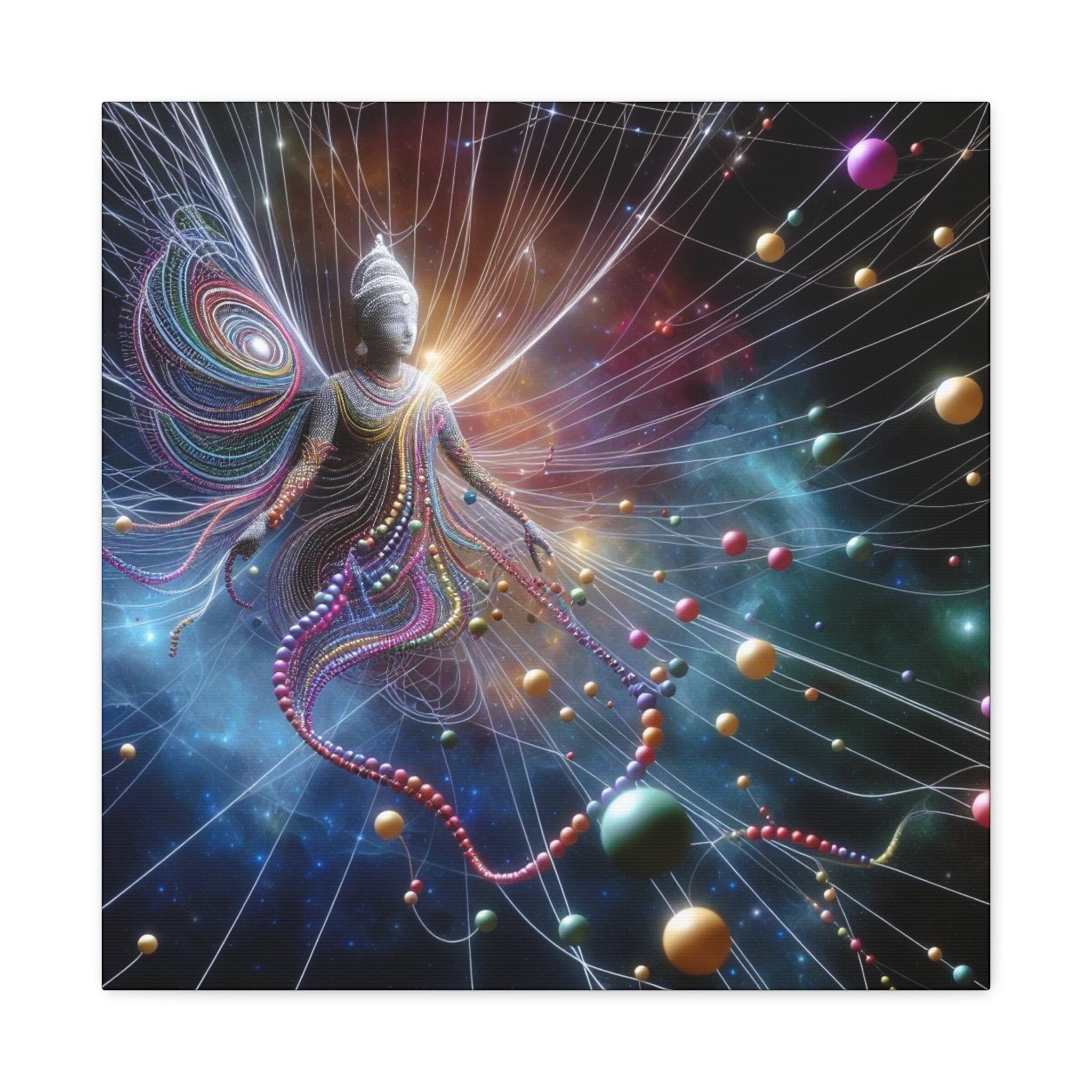 Introducing our captivating canvas art piece, "Indra's Net Illumination." Inspired by the profound concept of "Indra's Net" from ancient Hindu and Buddhist philosophy, this exquisite artwork invites you to delve into the interconnectedness of all existence.