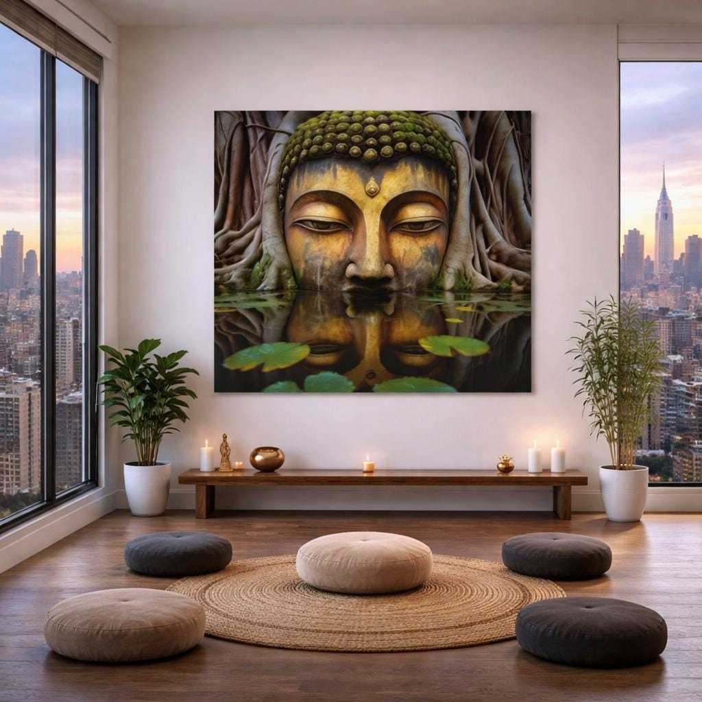 Introducing our captivating canvas artwork, "Divine Reflections." This serene masterpiece delicately captures the elusive quality of stillness, inviting viewers into a realm of profound calm and introspection. Each detail whispers a tale of tranquility, as soft hues blend seamlessly to evoke a sense of inner peace. Hang this enchanting piece in your space and immerse yourself in its tranquil embrace, allowing its quiet beauty to soothe your soul and inspire moments of serene contemplation. "Divine Reflections" is more than art, it's a gentle reminder to pause, breathe, and find solace in the stillness of the present moment.