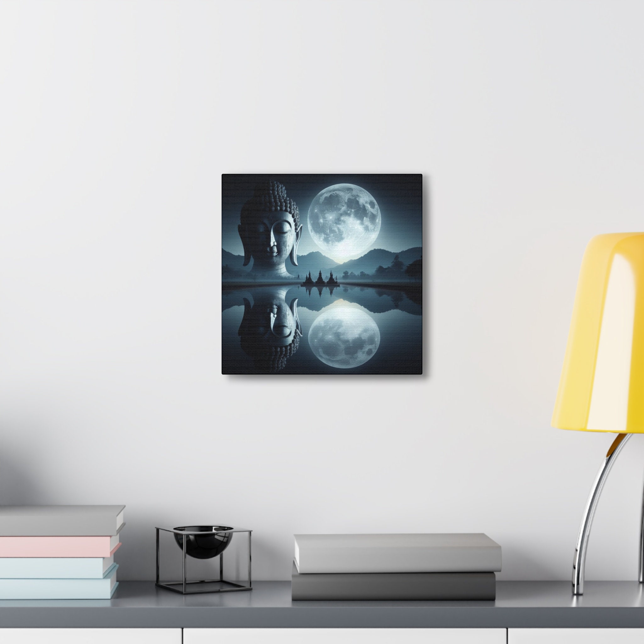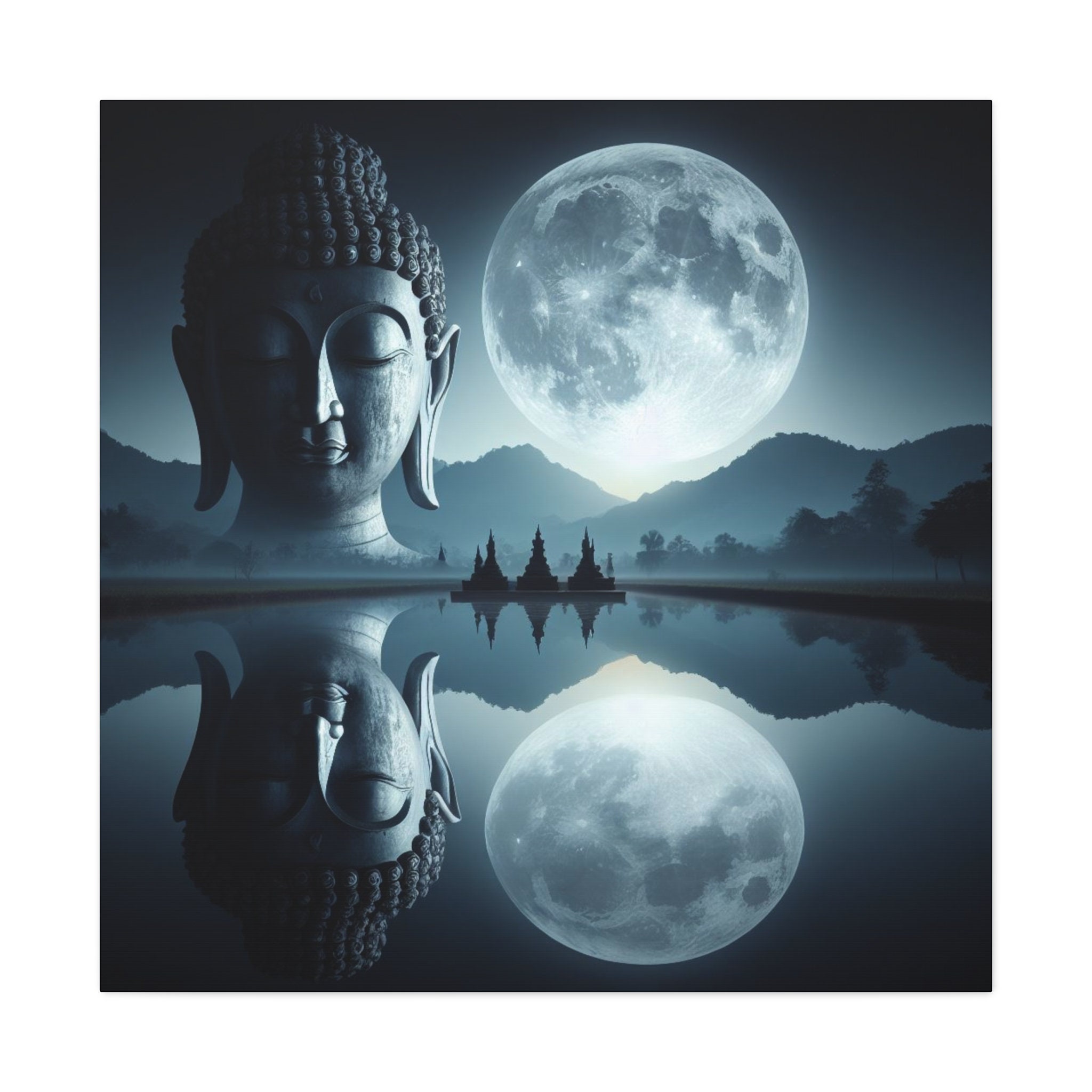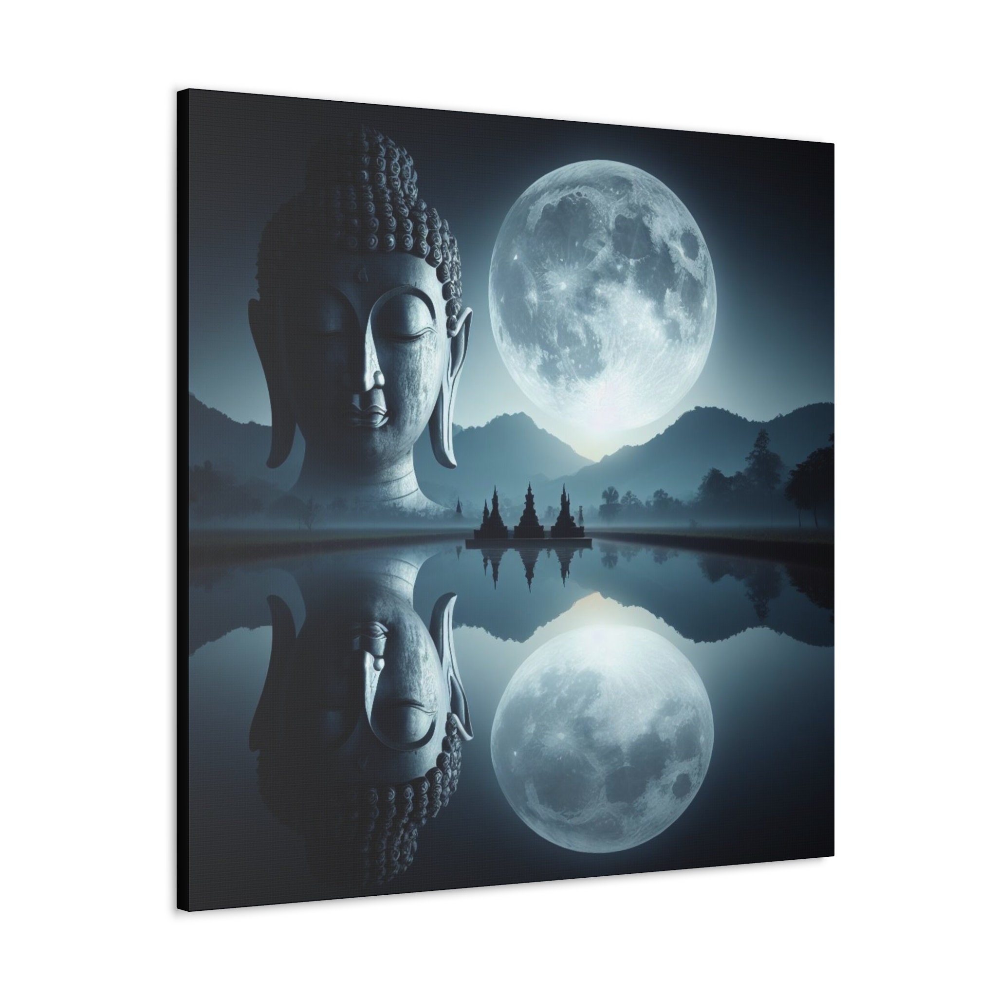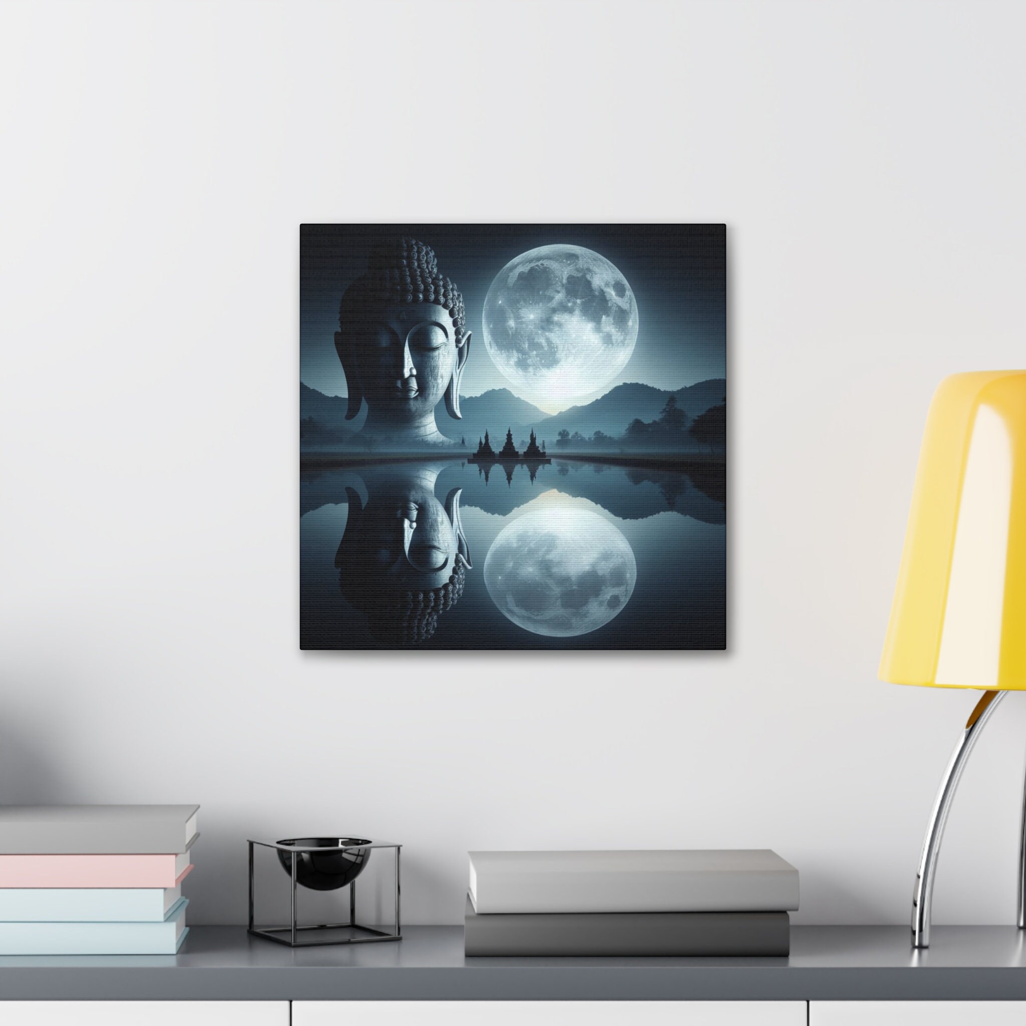Buddha and Moon Canvas Art: Spiritual Reflection