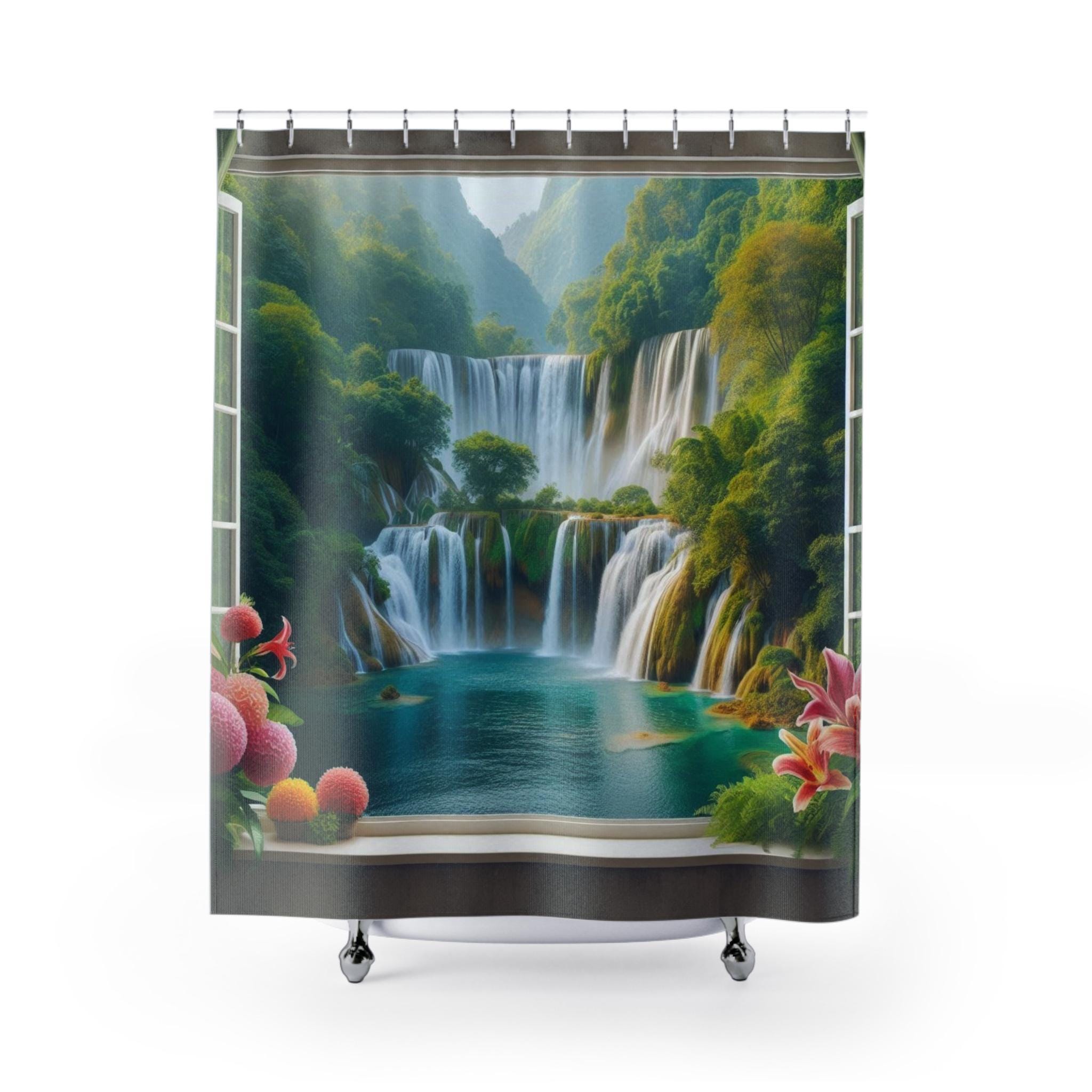 Waterfall Scenery Shower Curtain | Zen Bathroom Decor