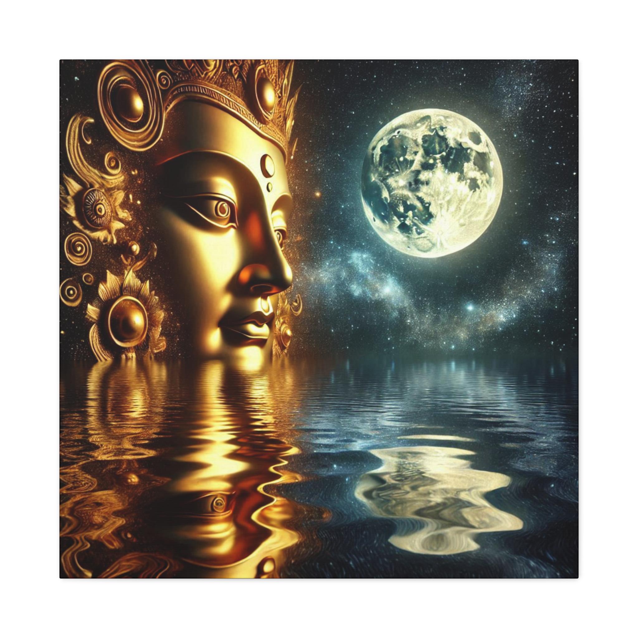 Immerse yourself in the luminous presence of the Golden Buddha Sacred Art, a mesmerizing portrayal of serenity, wisdom, and divine radiance. This captivating artwork features a golden Buddha head emerging from tranquil waters, encircled by concentric halos of glowing light, symbolizing spiritual awakening, boundless energy, and the infinite nature of awareness.