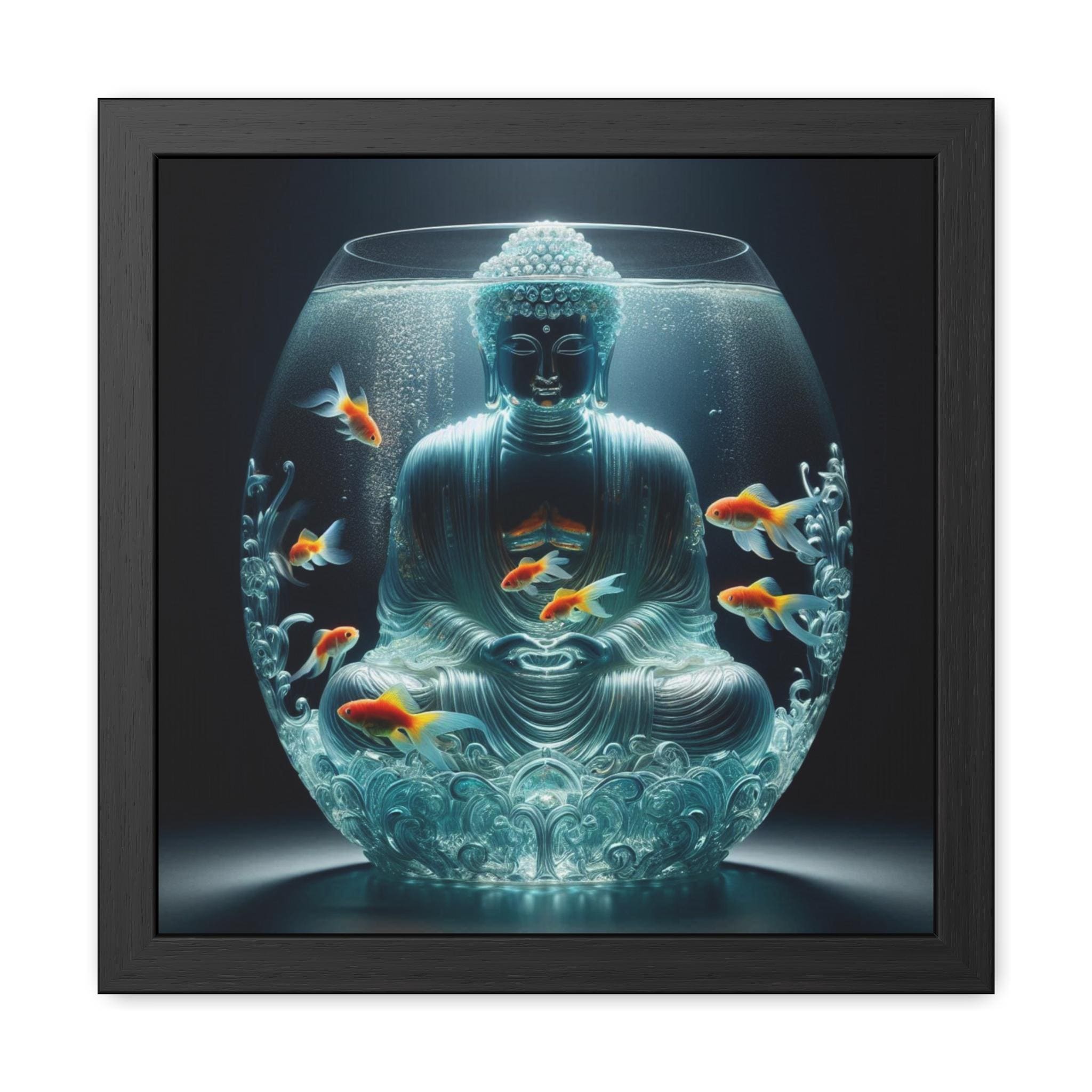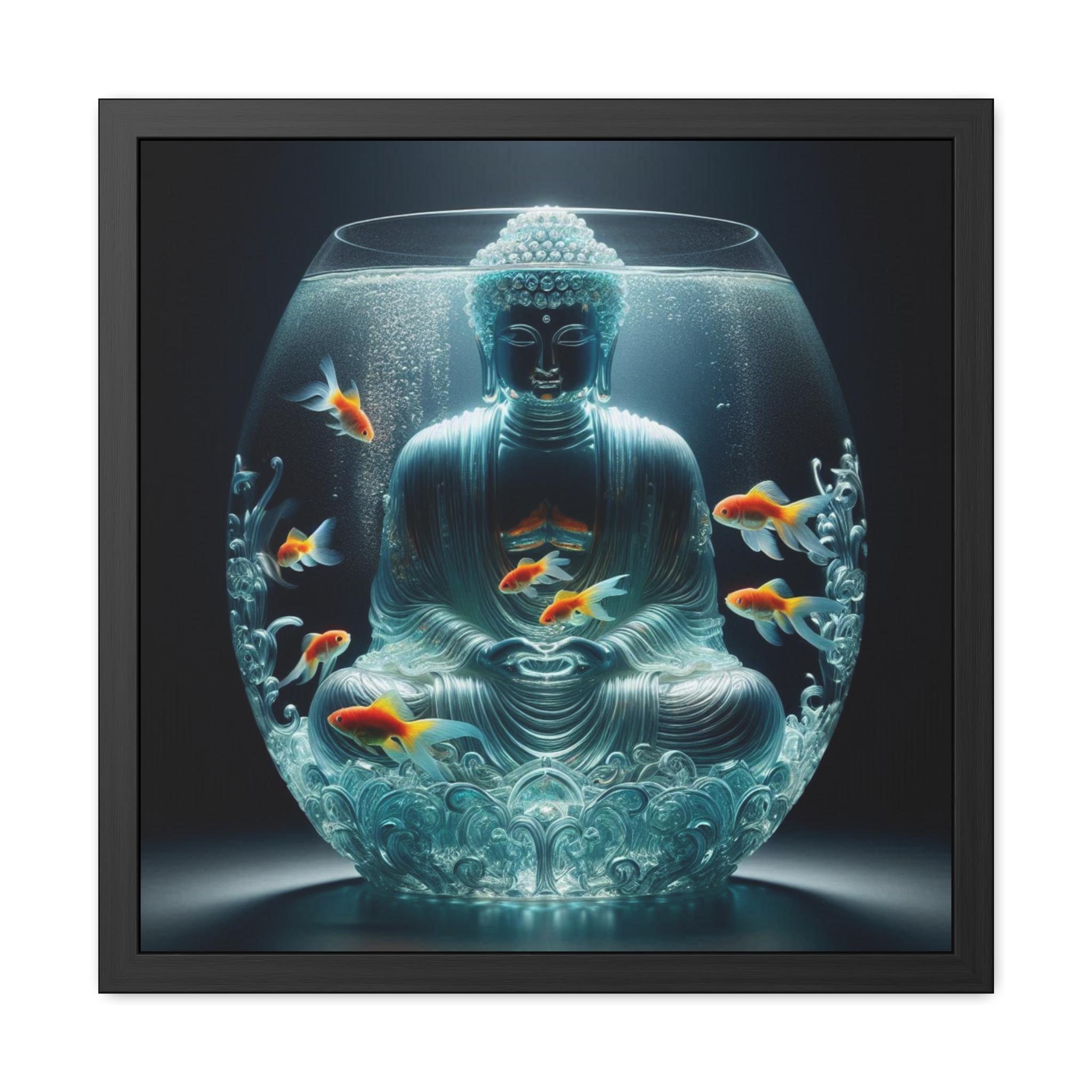 Immerse yourself in the serene beauty of Lotus Sphere Buddha, a breathtaking canvas print that captures the essence of tranquility and spiritual awakening. This ethereal artwork depicts a meditating Buddha gracefully encased in a crystal-clear, lotus-shaped water sphere, surrounded by golden koi fish gliding effortlessly. Their gentle movements create sacred geometric ripples, symbolizing the flow of energy and harmony in the universe.