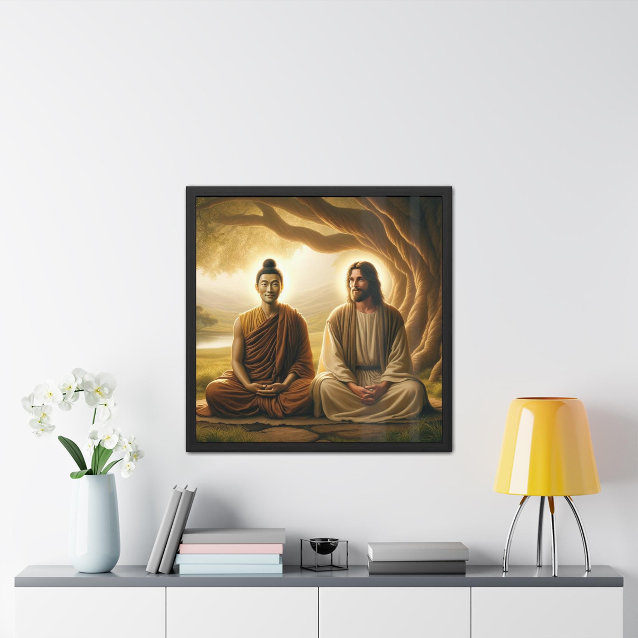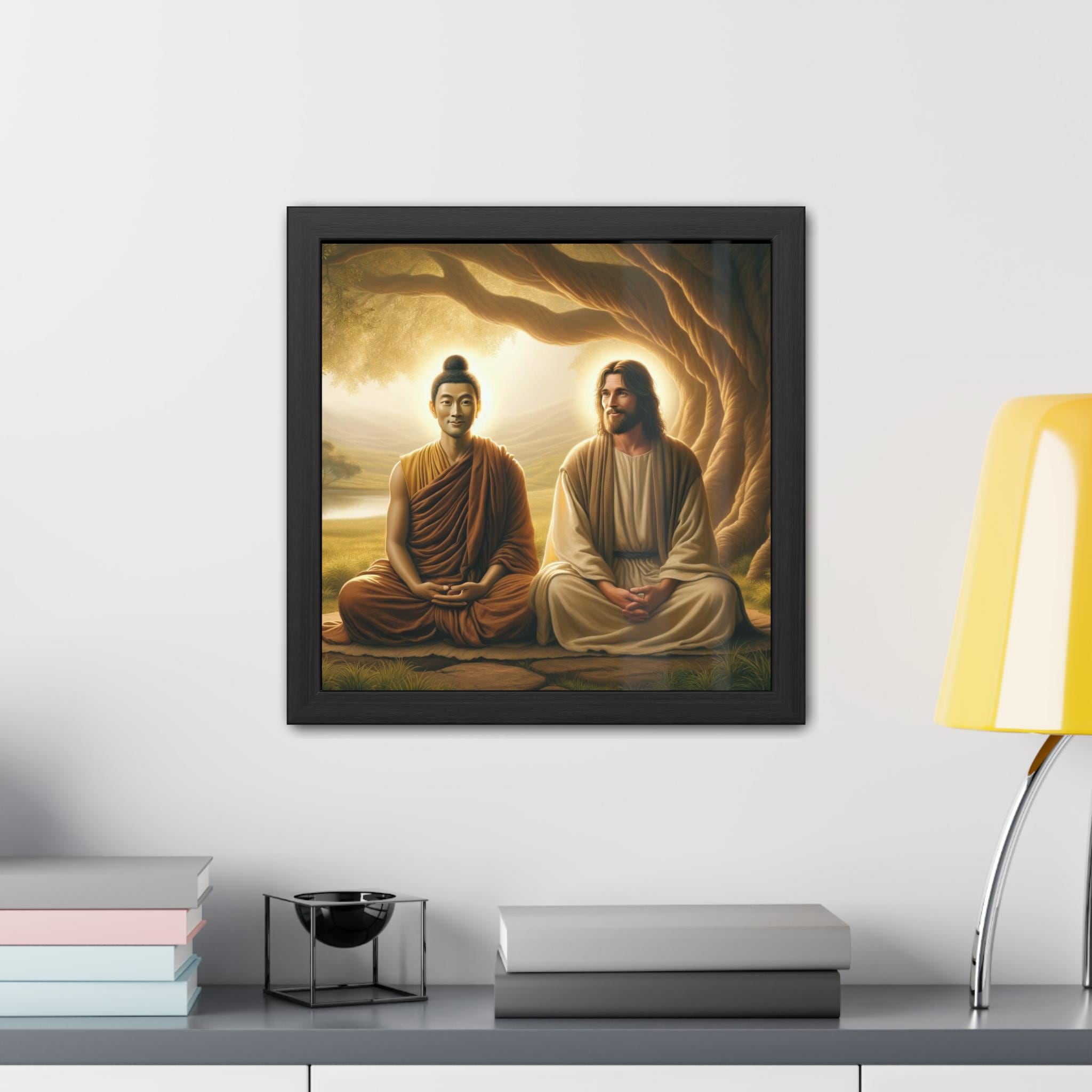 Buddha and Jesus Framed Poster: Spiritual Harmony Wall Art