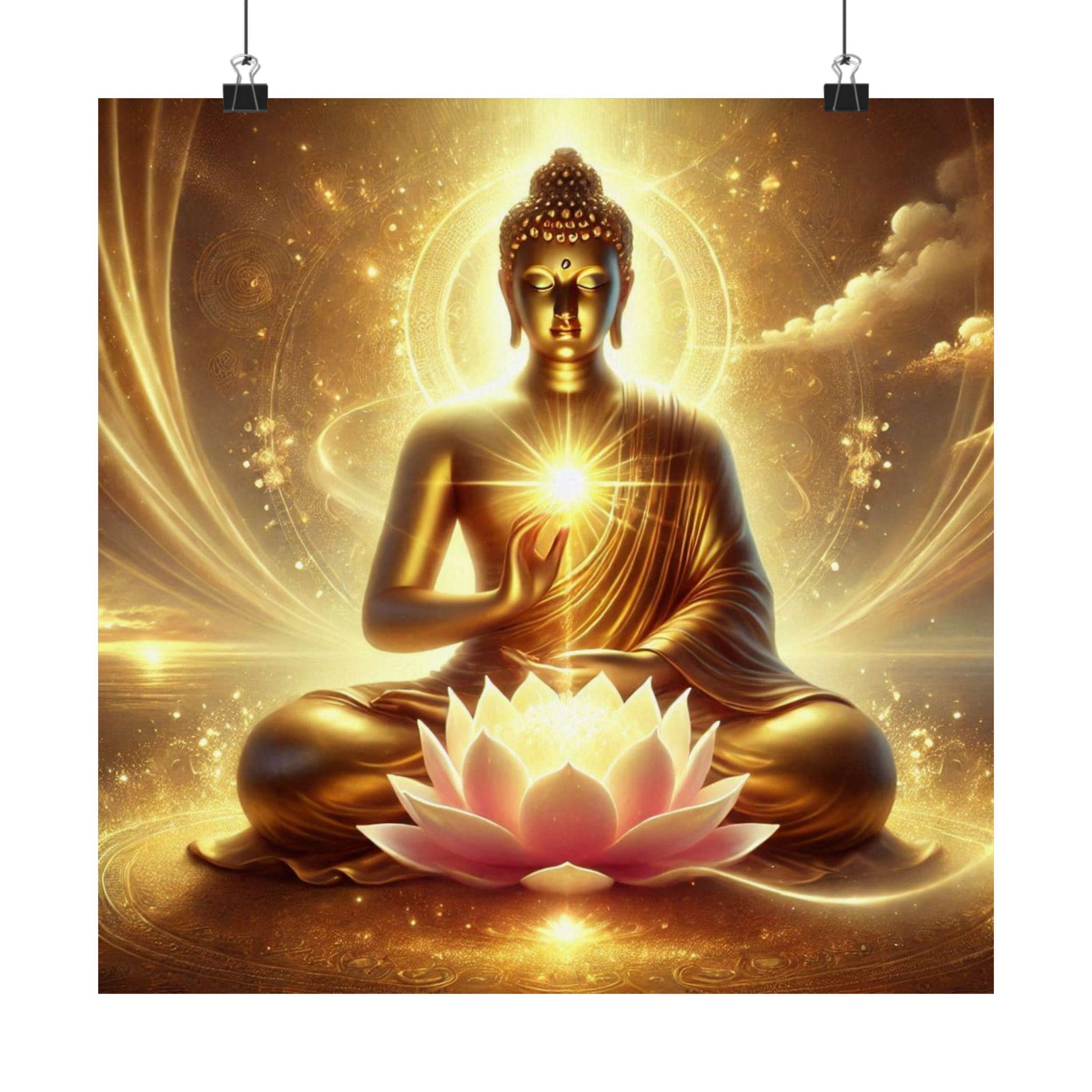 This breathtaking artwork portrays the Golden Buddha seated upon a radiant lotus, emanating waves of golden light and divine serenity. Surrounded by ethereal lotus petals, the Buddha symbolizes awakening, compassion, and timeless wisdom. The glowing lotus at the heart reflects purity and enlightenment, rising from the clouds to illuminate the path of peace. Perfect for meditation rooms, yoga spaces, or as a sacred focal point in your home, this piece infuses any environment with harmony, balance, and spiritual presence.