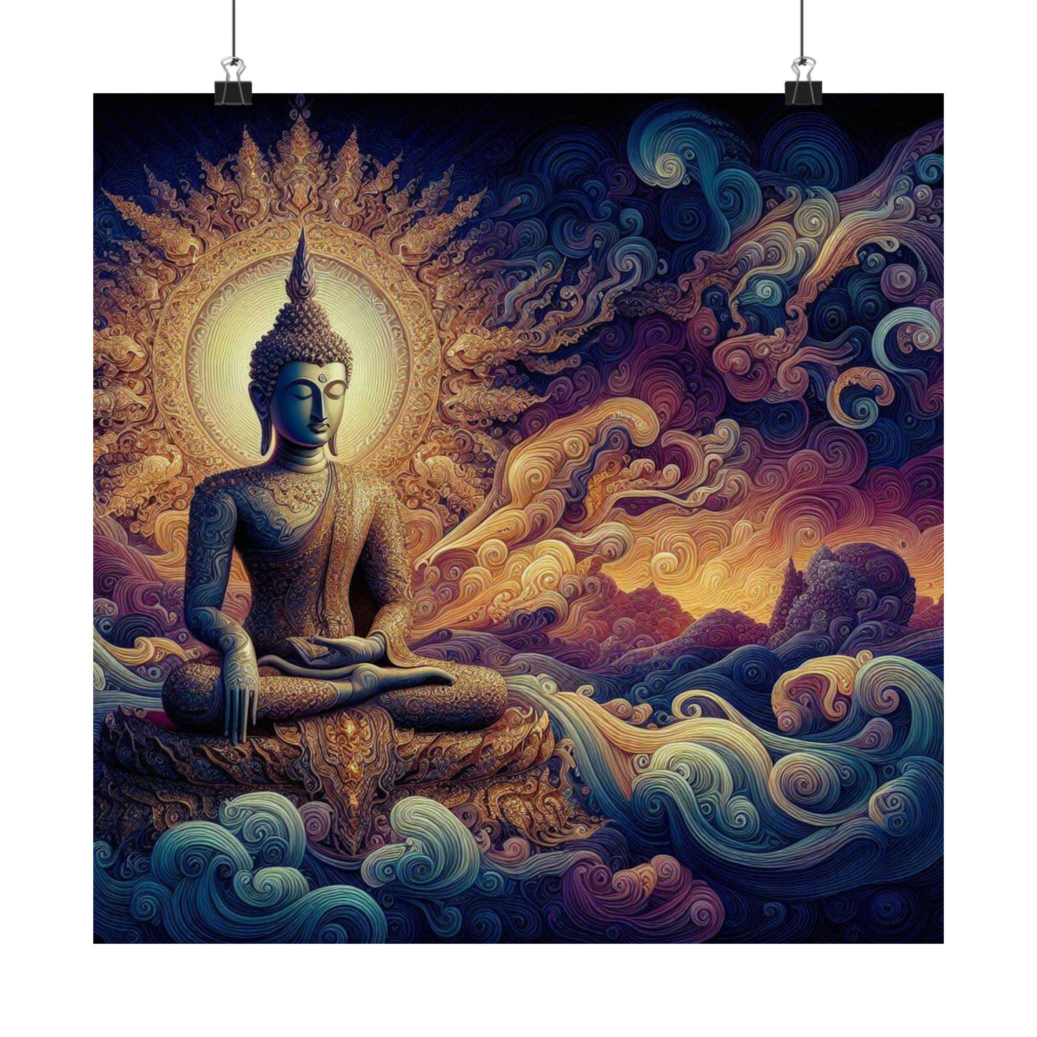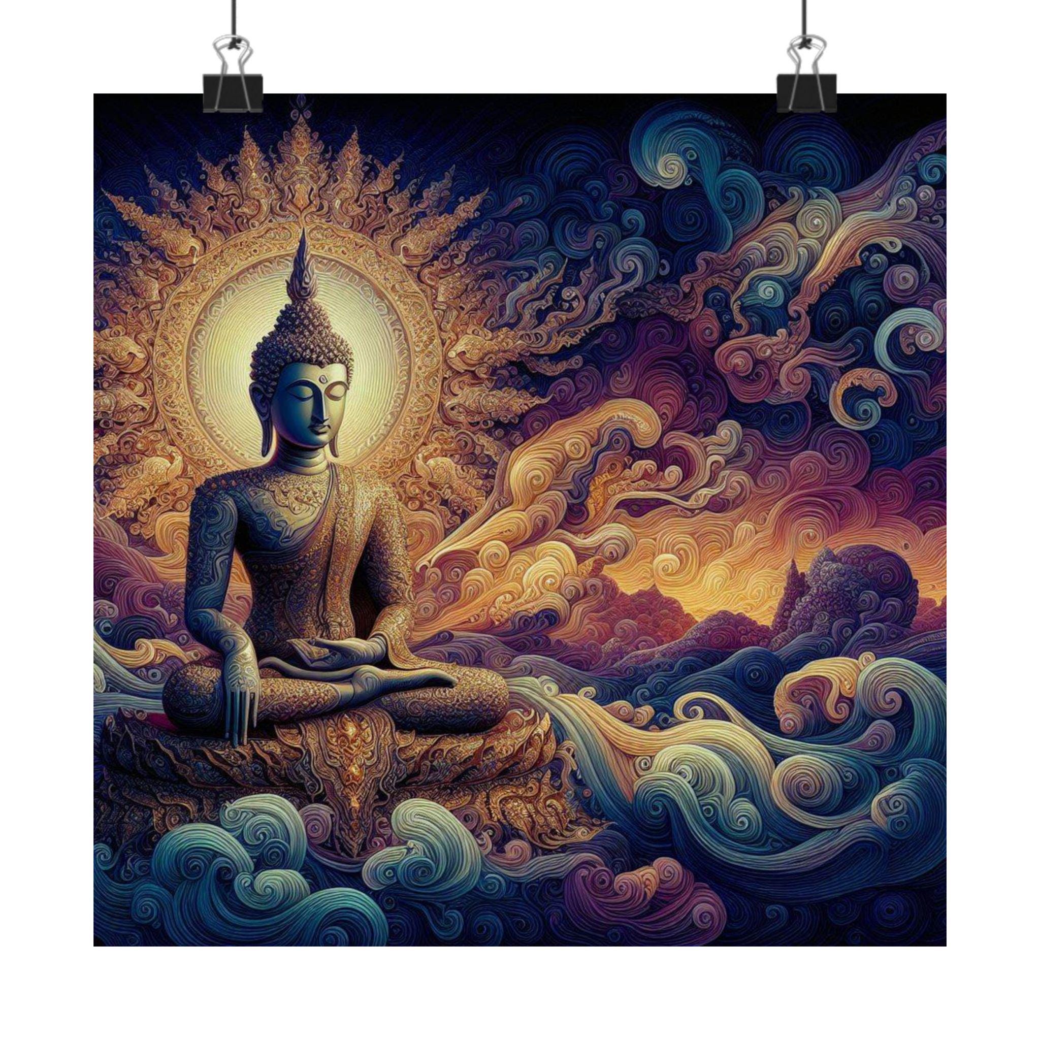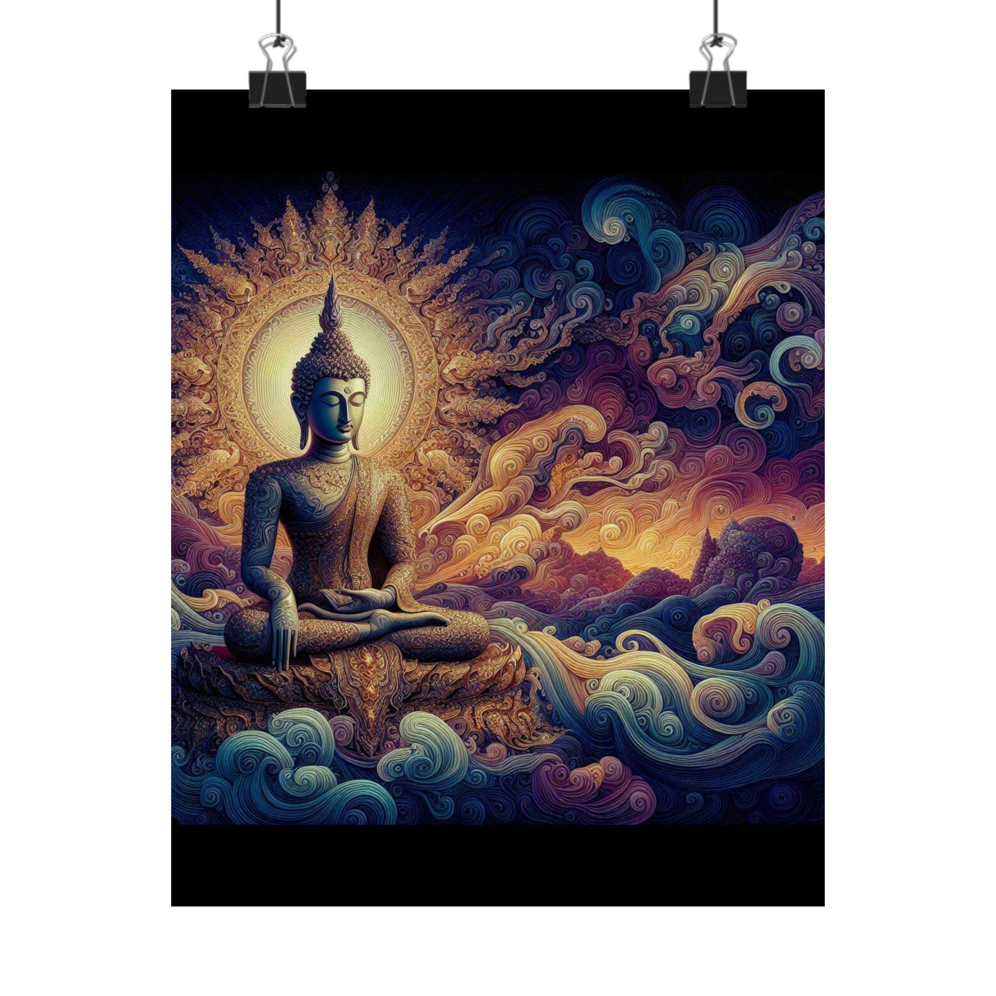 The Buddha remains unmoved at the center of the storm, embodying calm awareness amidst the eternal movement of life. Perfect for meditation spaces, yoga rooms, or sacred altars, this framed poster reminds us that like the wind, thoughts and emotions arise and pass, while true awareness abides.