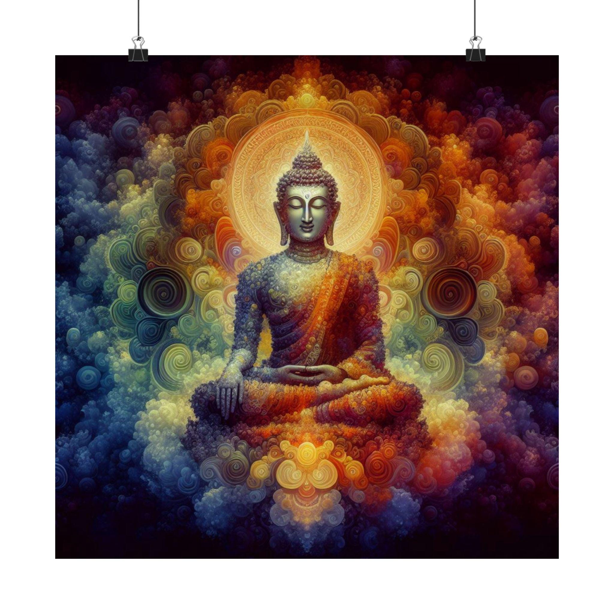 This mesmerizing artwork depicts the Buddha seated in radiant meditation, emerging from intricate swirls of texture that resemble fertile soil, stone, and cloud. The image embodies the primordial element of earth—the ground of stability, support, and nourishment that sustains all life. The Buddha’s form arises as though sculpted from the very foundation of existence, radiating strength and serenity. The mandala-like aura behind him mirrors the timeless solidity of the mountains and the fertile richness of the earth itself. A profound reminder of rootedness, balance, and the enduring presence of awakened truth. Perfect for meditation rooms, yoga spaces, or seekers who draw strength from the grounding element of earth.