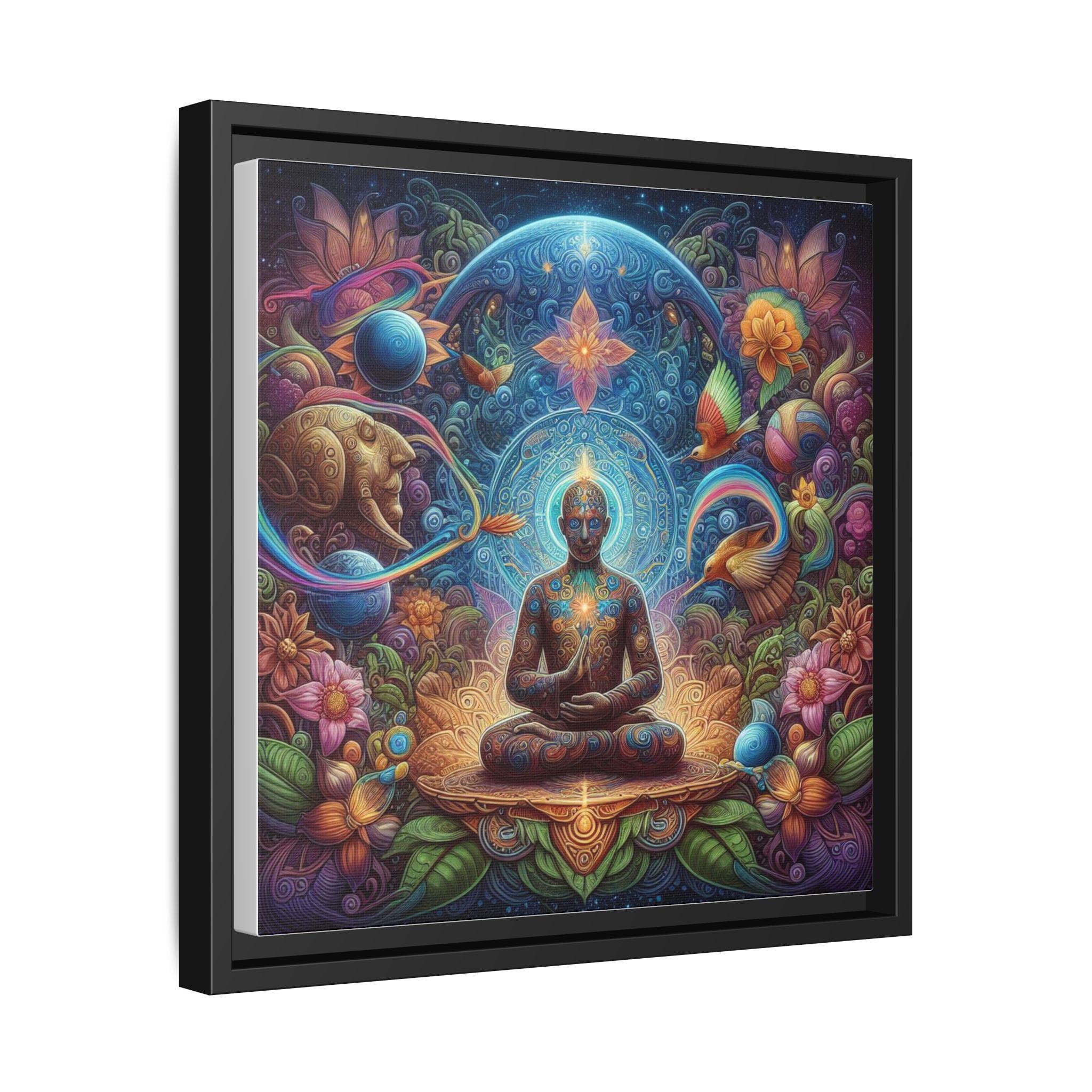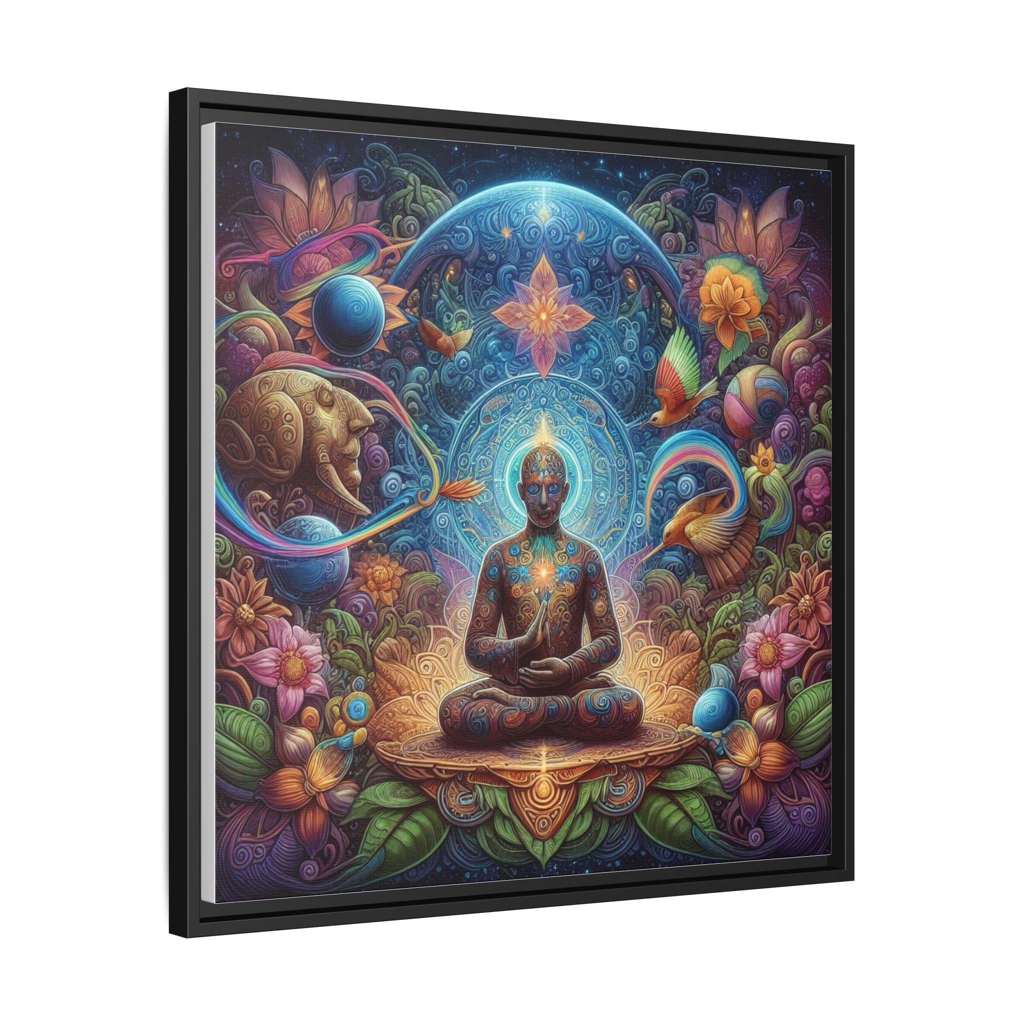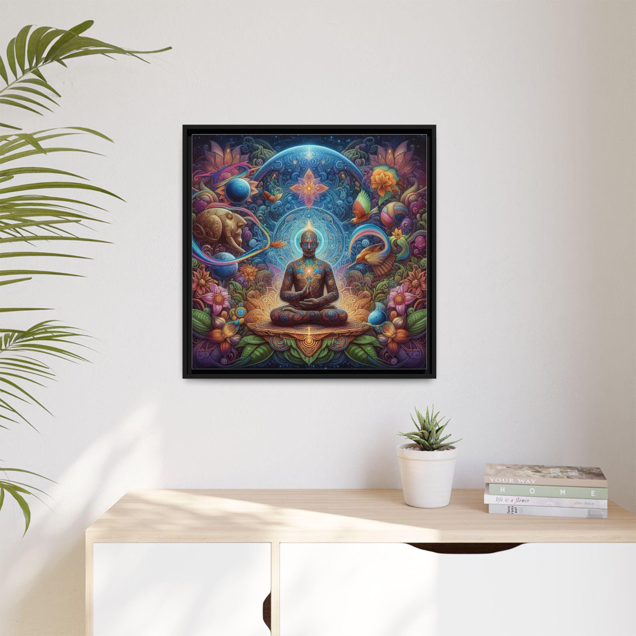 This matte canvas print brings together the earthy clarity of Ayahuasca plant medicine and the stillness of Dzogchen practice. Rich, layered color evokes jungle light and ceremonial space, while quiet negative space invites the breath. Hung above a meditation cushion or in a reading nook, it reads like a map of inner terrain — curious, rooted, and meditative. The framed presentation gives it a gallery presence without shouting, so it settles into retreats, altars, or living rooms and holds attention with gentle authority.