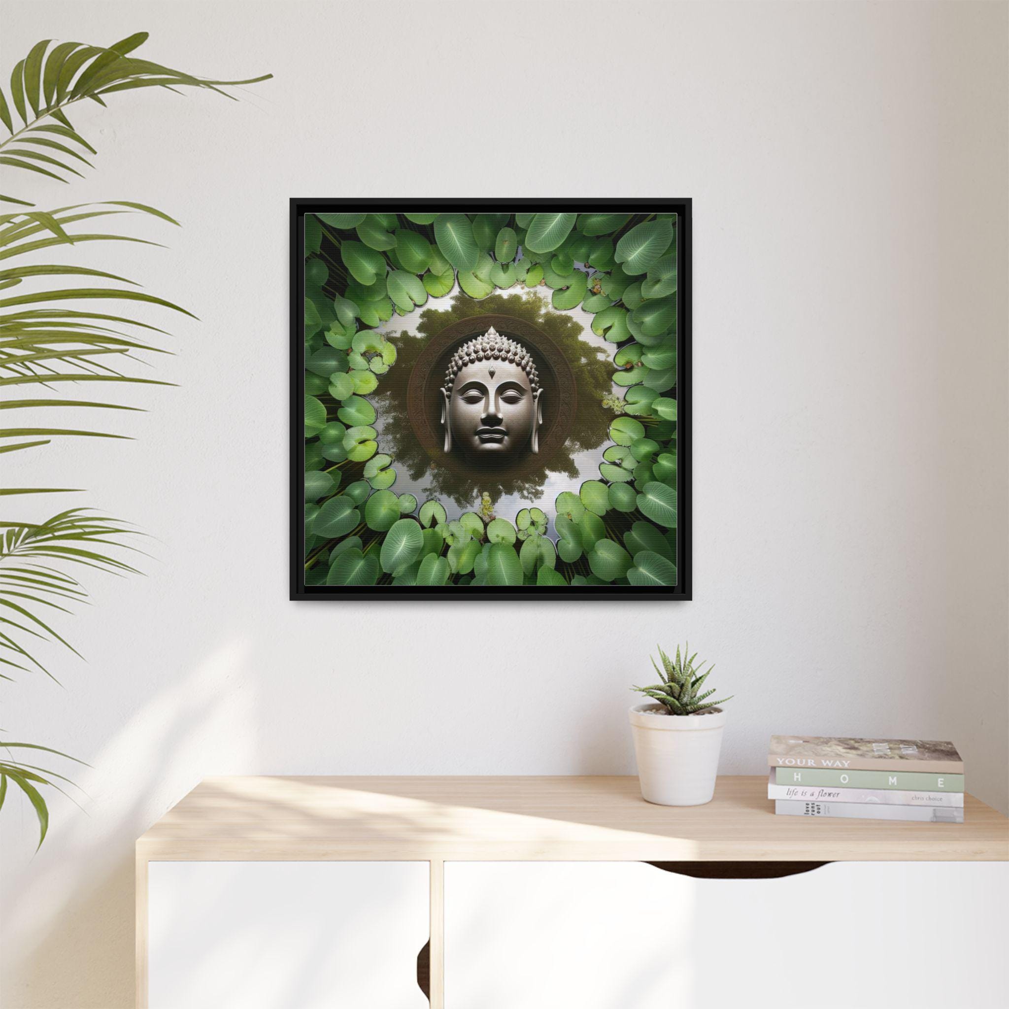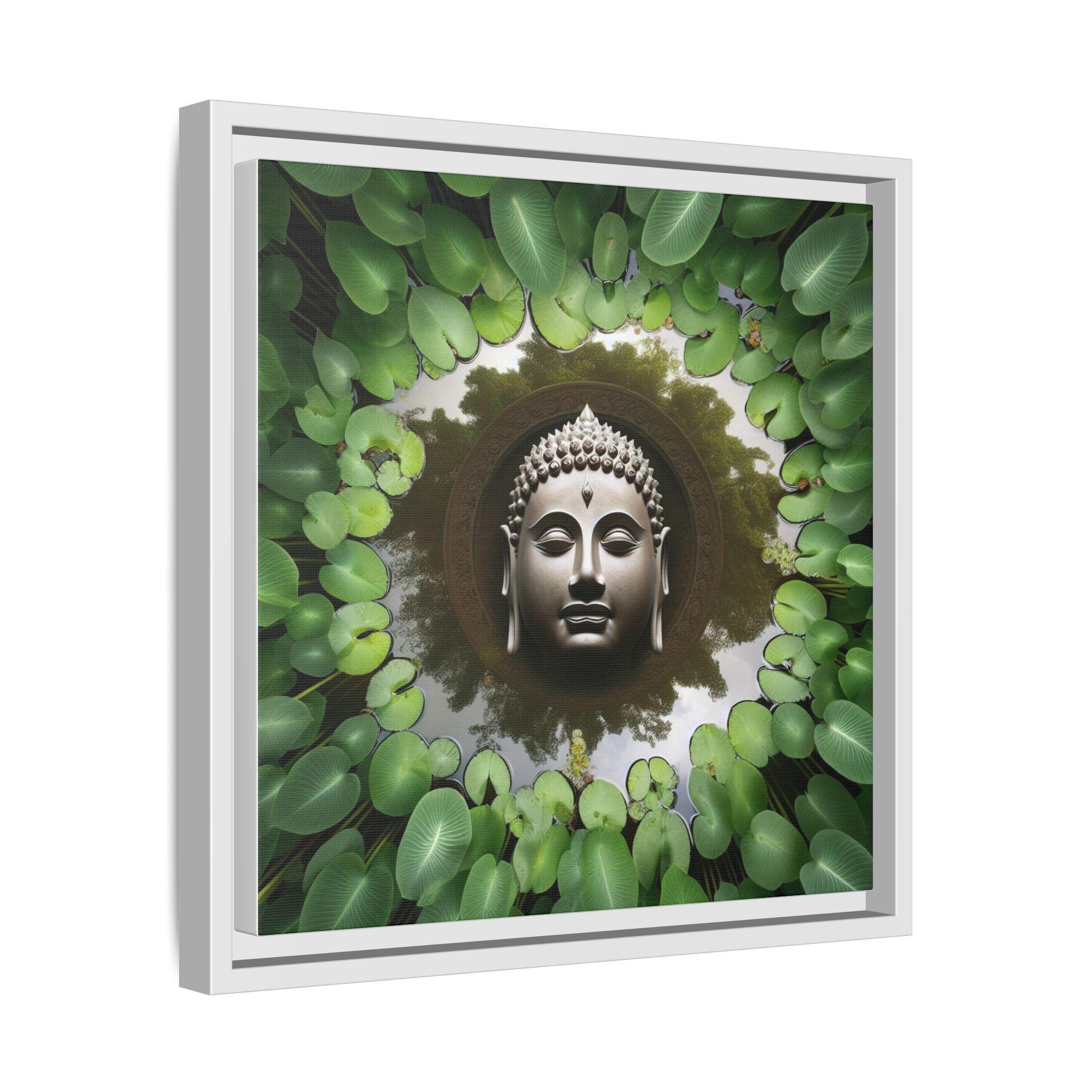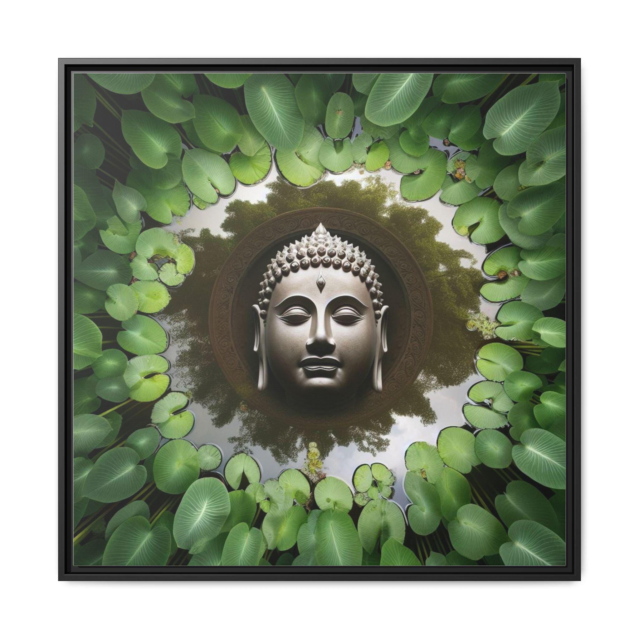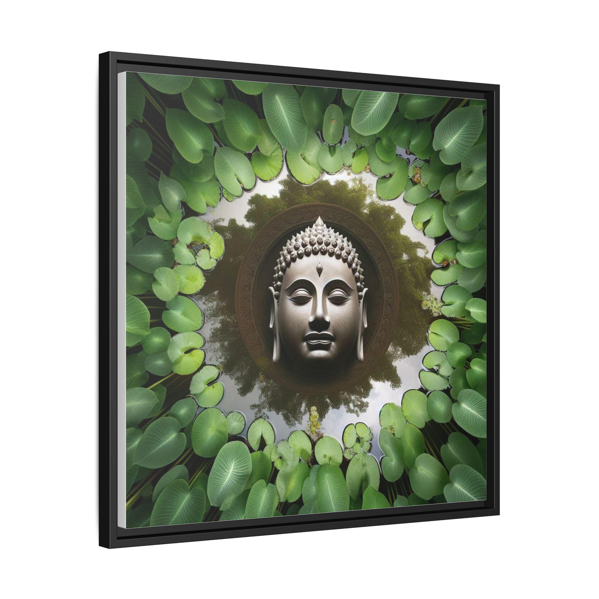 This artwork, Nature of Awakening, reflects the inseparable unity between consciousness and the natural world. A serene Buddha face emerges from a living mandala of lush green leaves, symbolizing the silent intelligence woven through all forms of life.