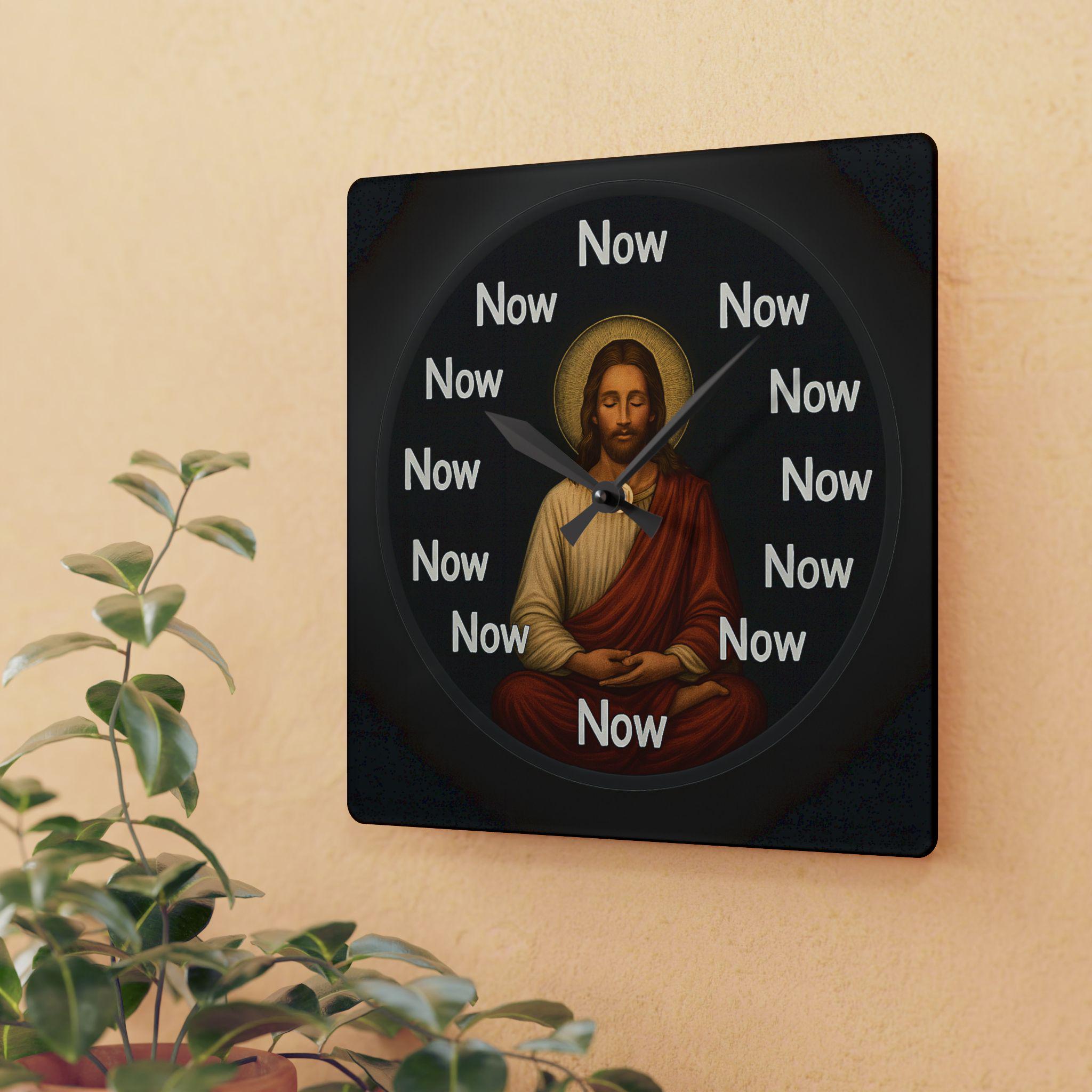 Acrylic wall clock Seated in stillness at the center of time, Christ rests in effortless presence while every hour speaks the same word: Now. This image points beyond historical Jesus to Christ Consciousness—the timeless awareness of unity, compassion, and awakened being. The halo is not decoration; it is recognition. The meditative posture is not effort; it is remembrance.
