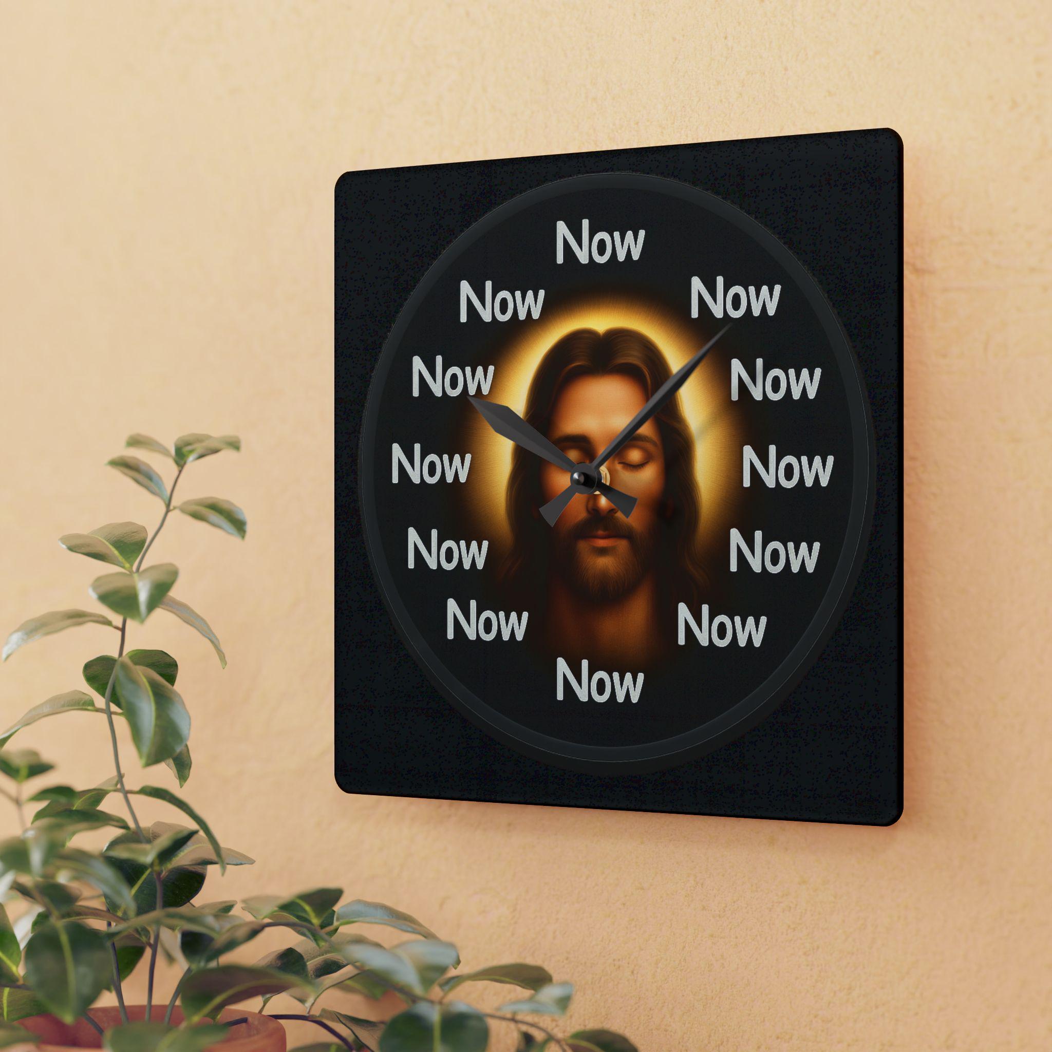 Acrylic wall clock At the still center of time, the face of Christ rests in deep meditation—eyes closed, heart wide open, radiating love without effort or condition. Every hour around Him speaks the same word: Now. No ticking hands. No countdown to salvation. Just presence.