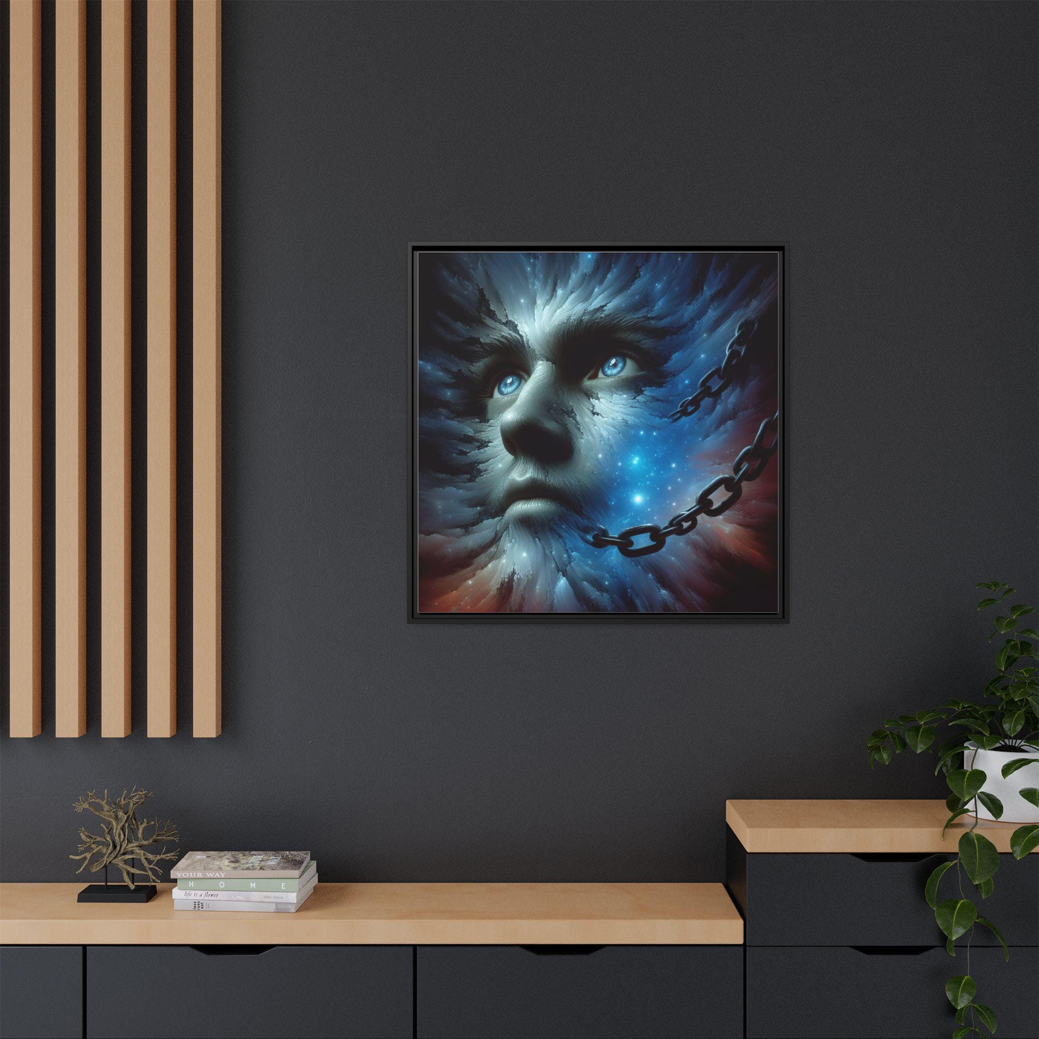 The eyes are lifted, not searching, not pleading. They’re seeing without needing confirmation. This is the look of awareness after the chains have done their job and fallen away. The chain around the neck isn’t oppression anymore; it’s evidence. Proof that bondage was seen clearly enough to dissolve.