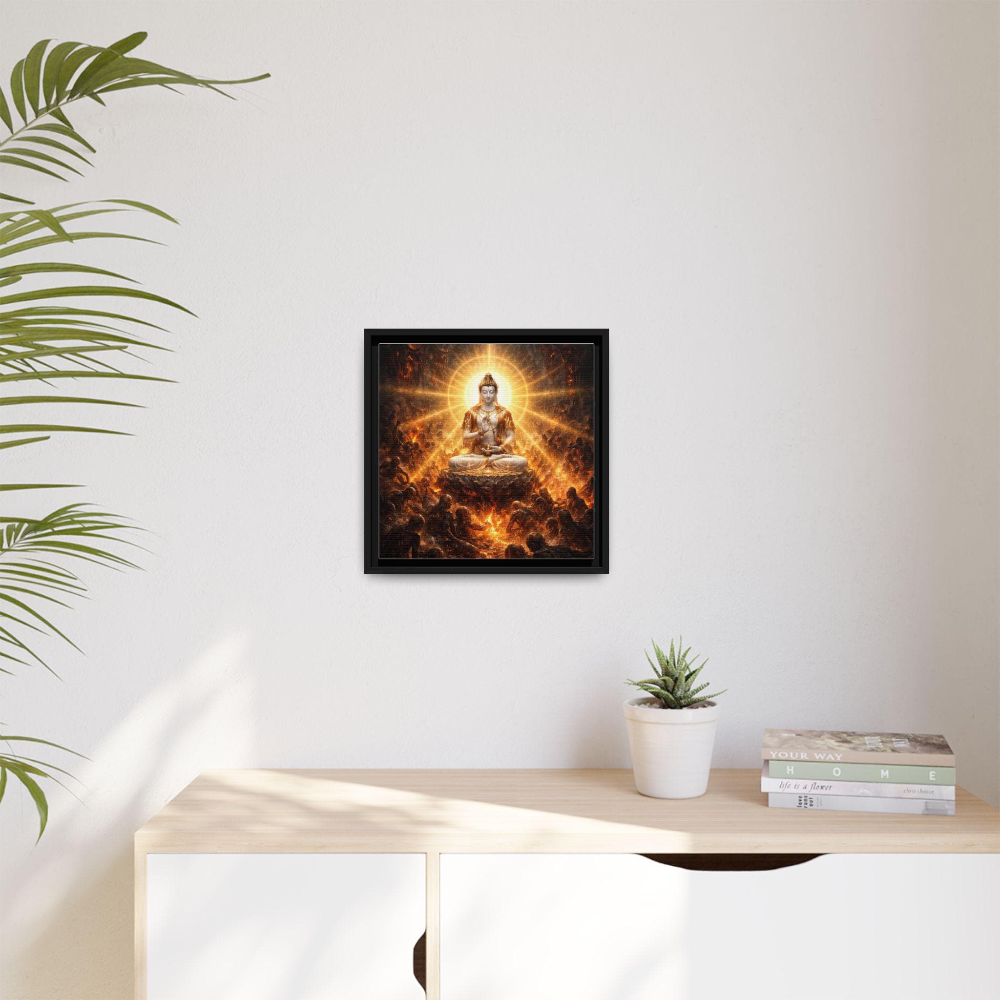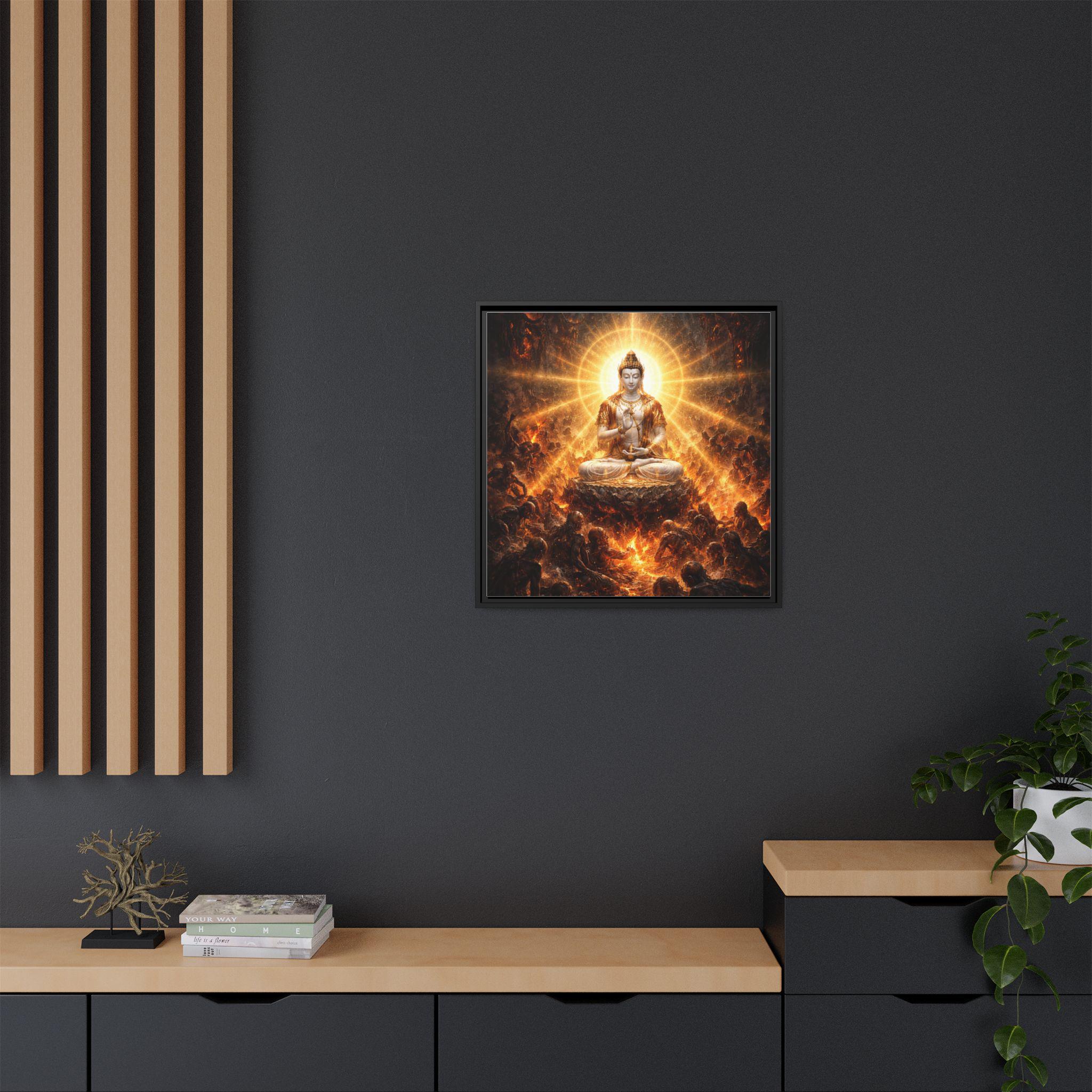 In the darkest realms of torment and despair, an enlightened Vajrasattva Buddha sits in perfect stillness, radiating unconditional compassion in every direction. Surrounded by suffering beings lost in anguish, his luminous presence becomes a beacon of mercy and liberation. This image reminds us that no matter how deep the suffering, awakening and compassion are never absent — even in hell itself.